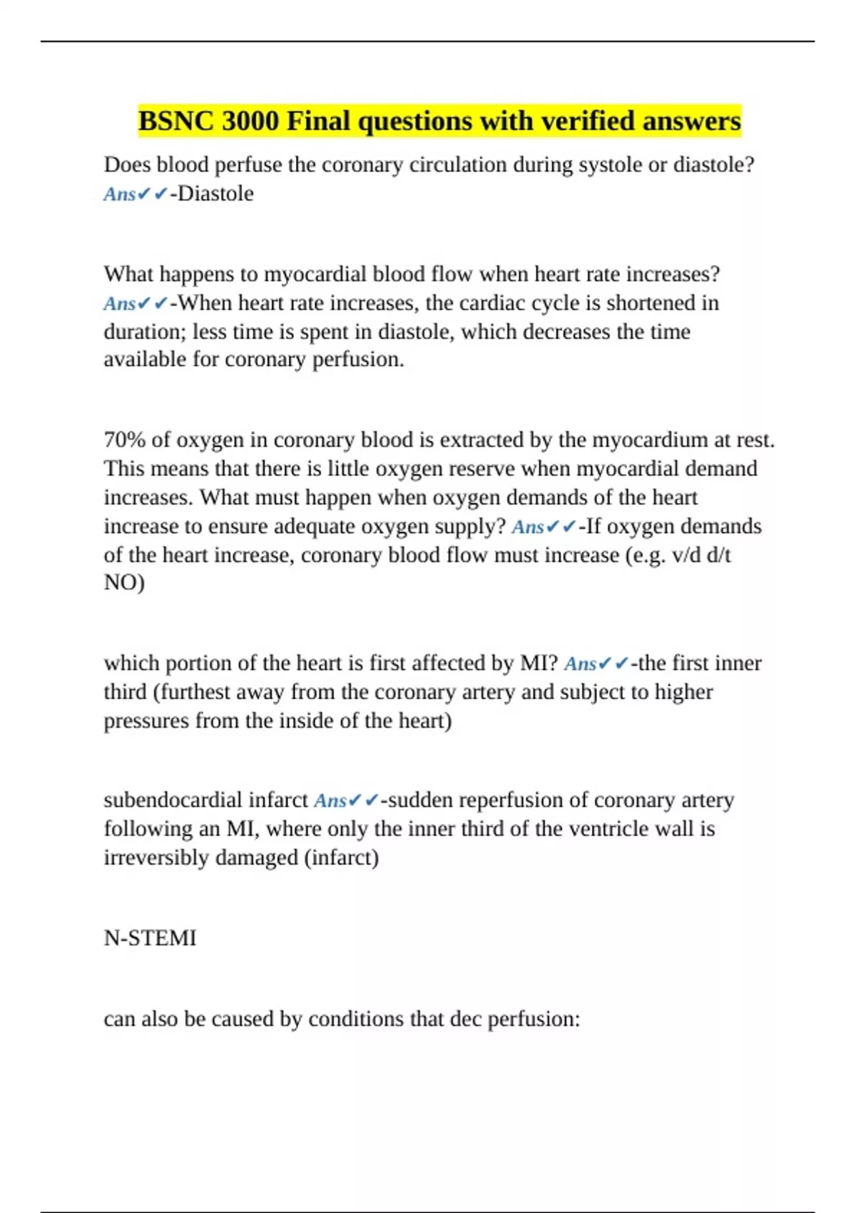 subendocardial infarct Ans✔✔-sudden reperfusion of coronary artery