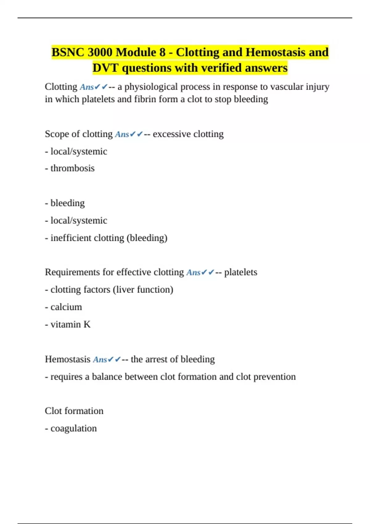 Clotting Ans✔✔-- a physiological process in response to vascular injury