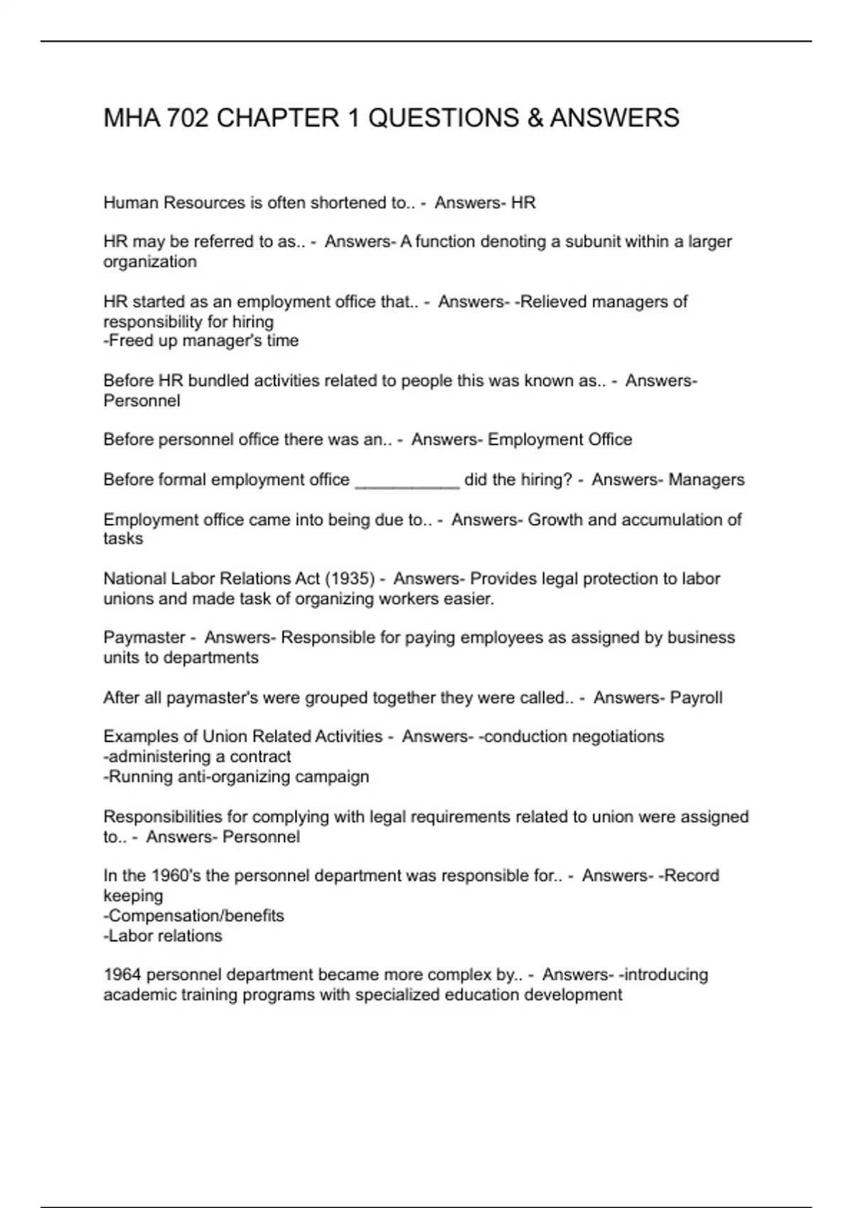 MHA 702 CHAPTER 1 QUESTIONS & ANSWERS