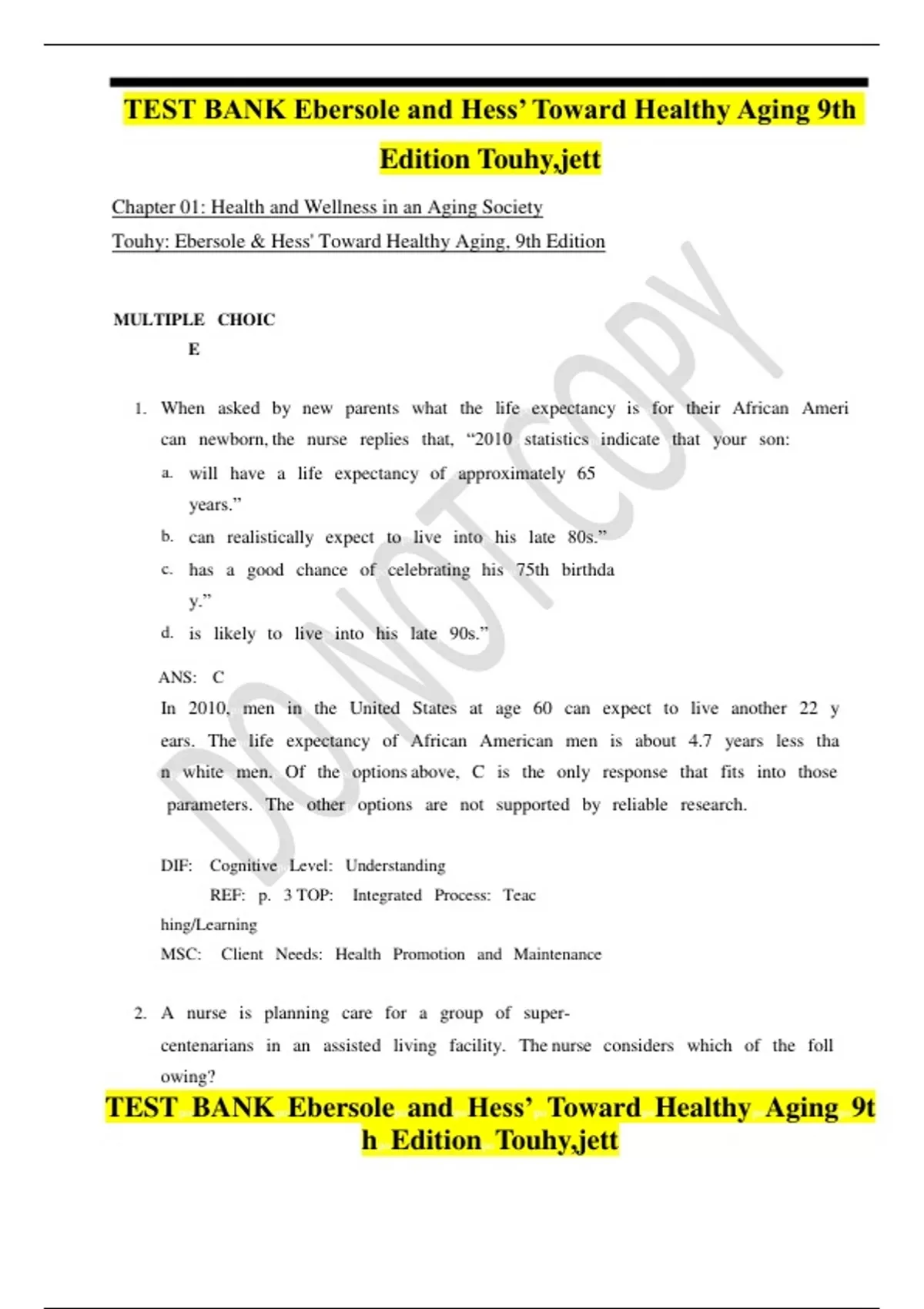 TEST BANK Ebersole and Hess’ Toward Healthy Aging 9th