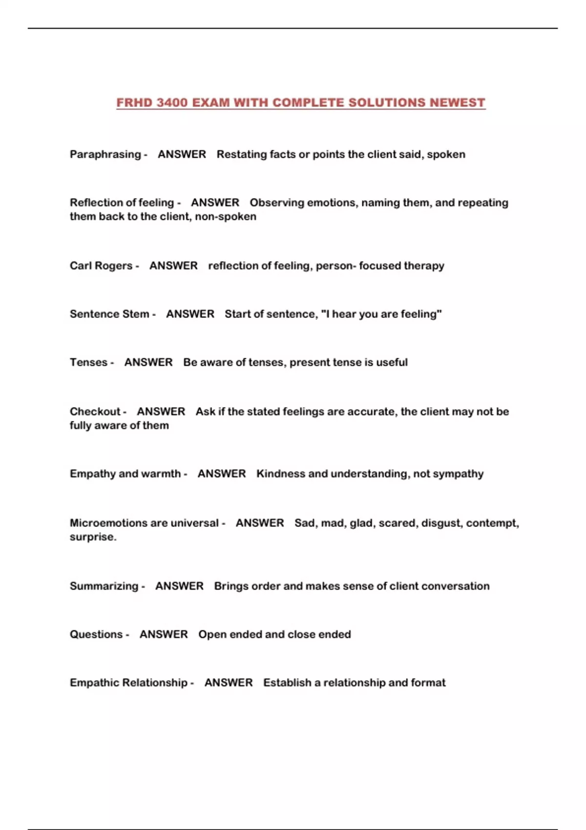 FRHD 3400 EXAM WITH COMPLETE SOLUTIONS NEWEST