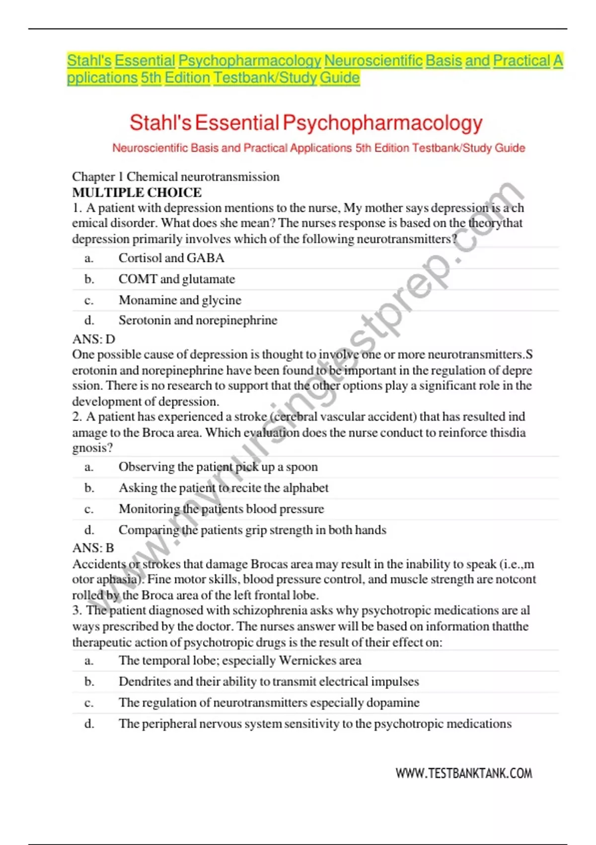 NeuroscientificdBasisdanddPracticaldApplicationsd 5thdEditiondTestbank/StudydGuide