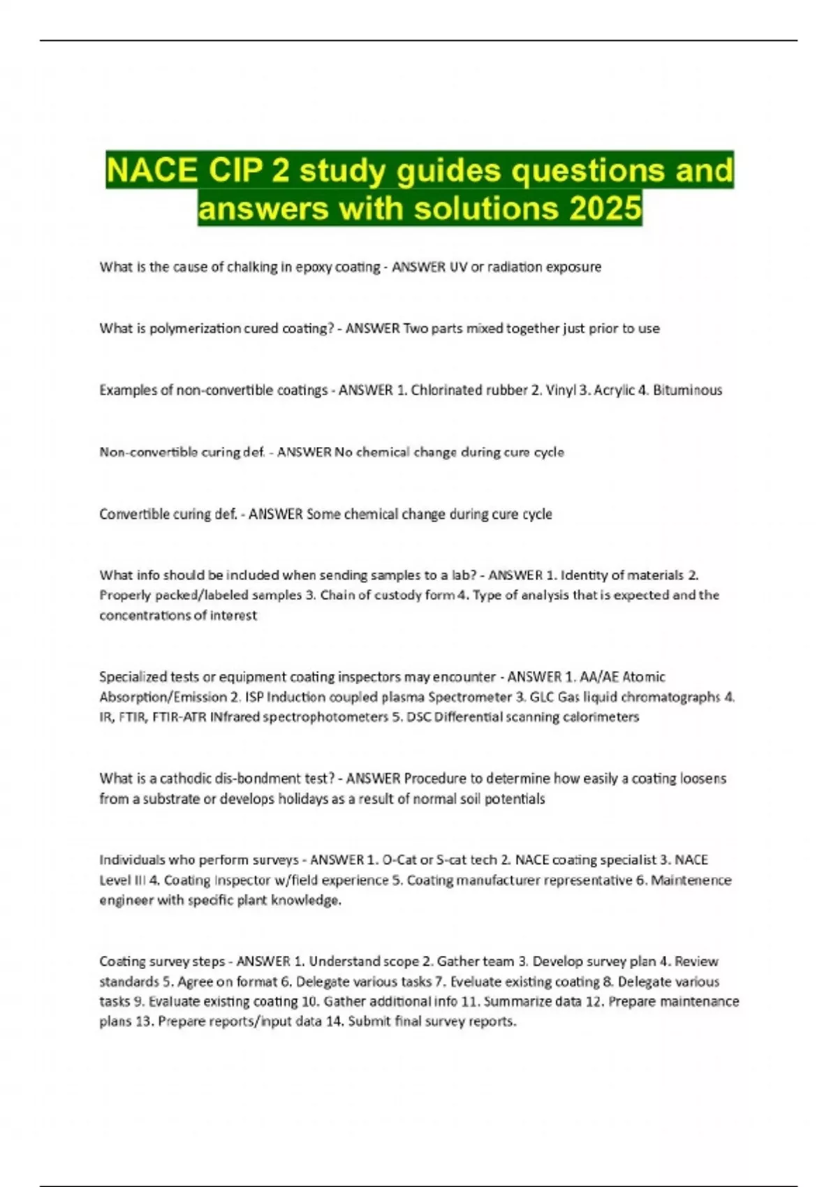 NACE CIP 2 study guides questions and answers with solutions 2025