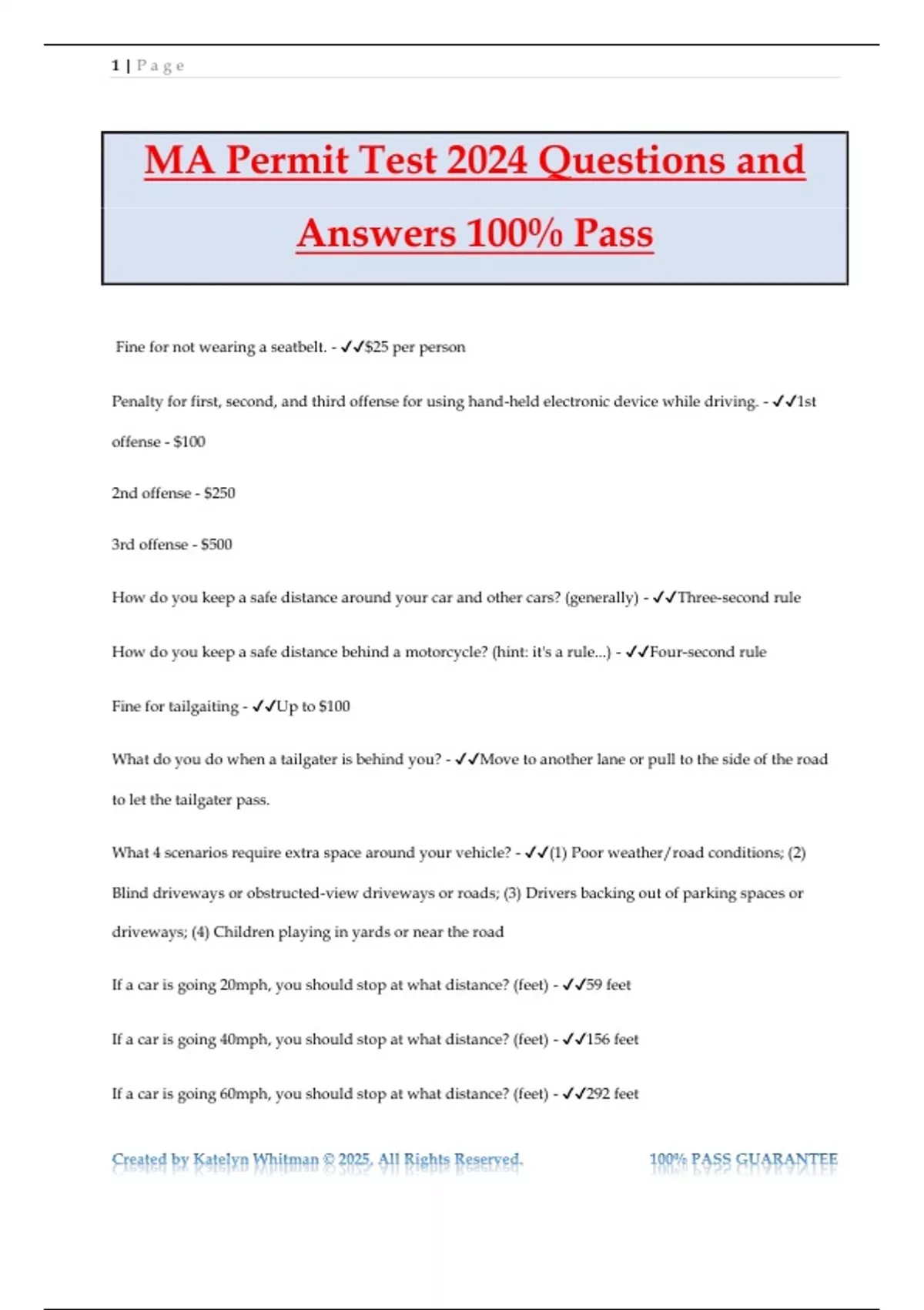 Created by Katelyn Whitman © 2025, All Rights Reserved. 100% PASS GUARANTEE