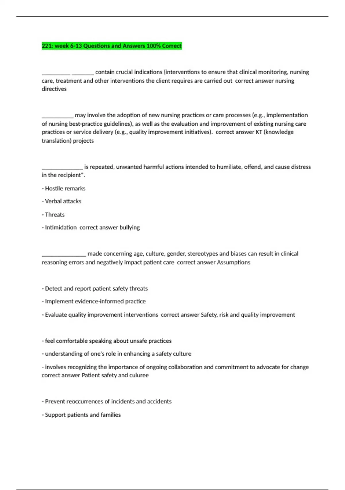 221: week 6-13 Questions and Answers 100% Correct