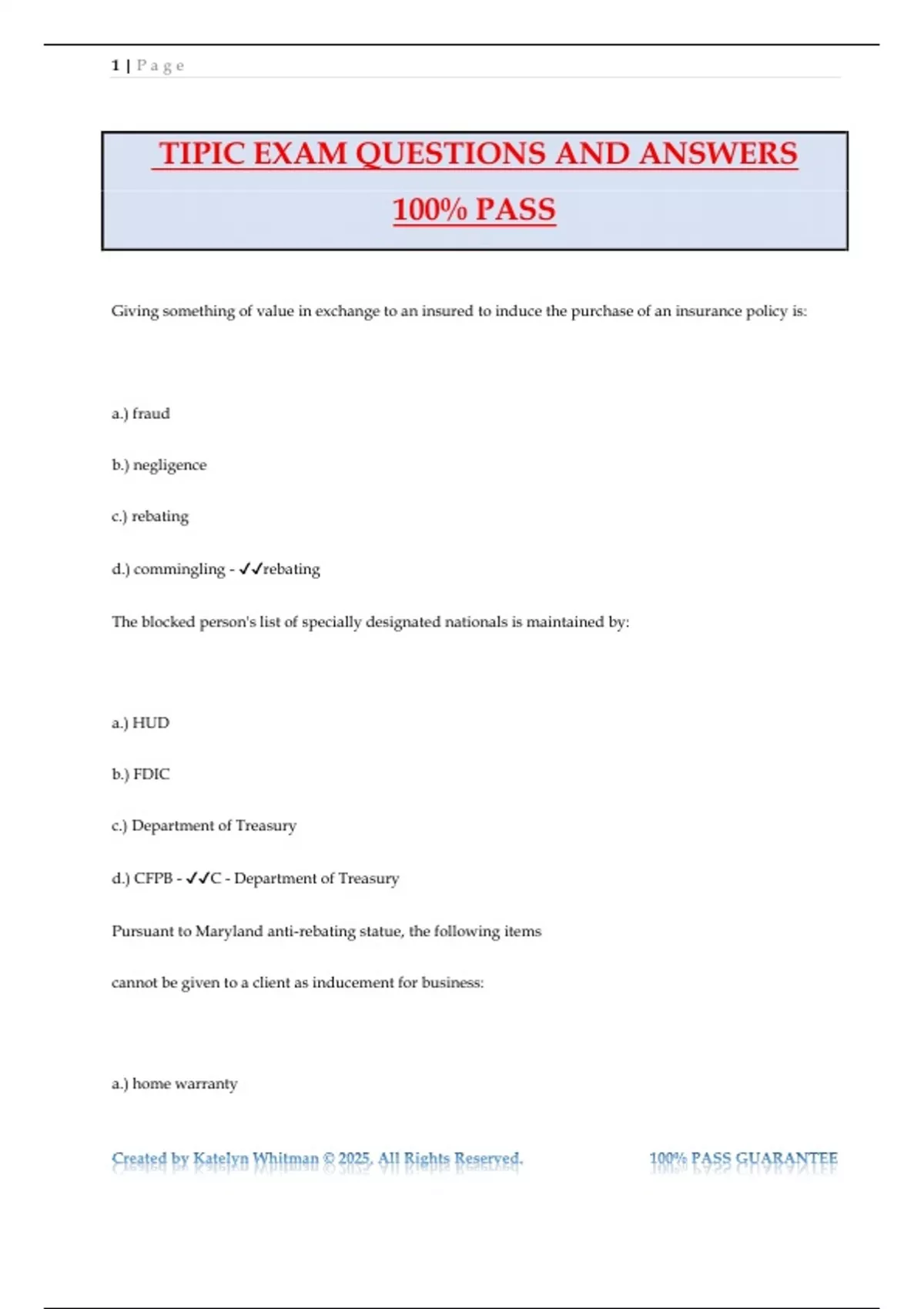 Created by Katelyn Whitman © 2025, All Rights Reserved. 100% PASS GUARANTEE
