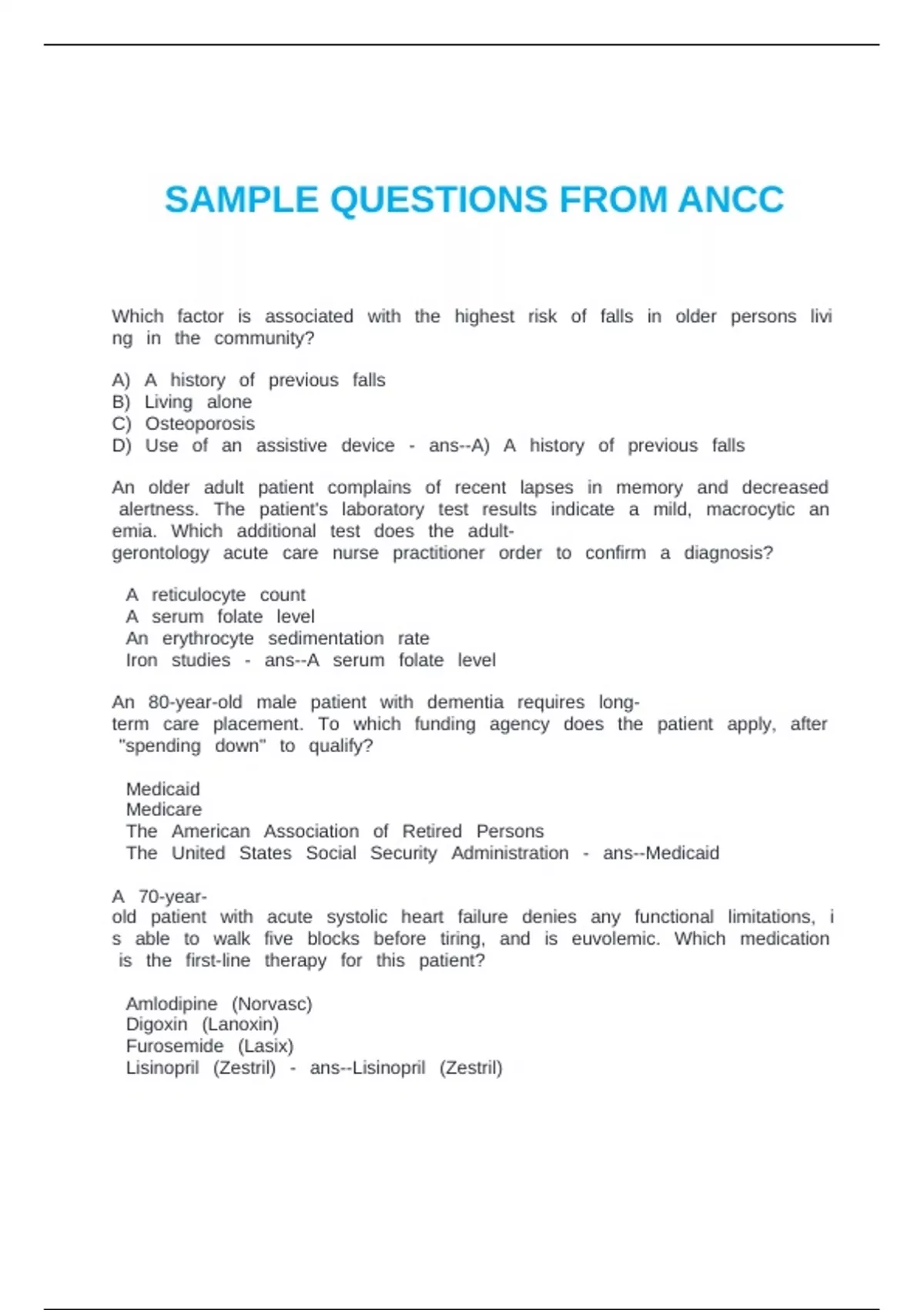 SAMPLE QUESTIONS FROM ANCC
