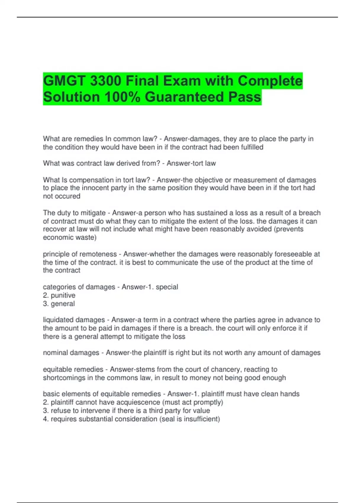 Solution 100% Guaranteed Pass