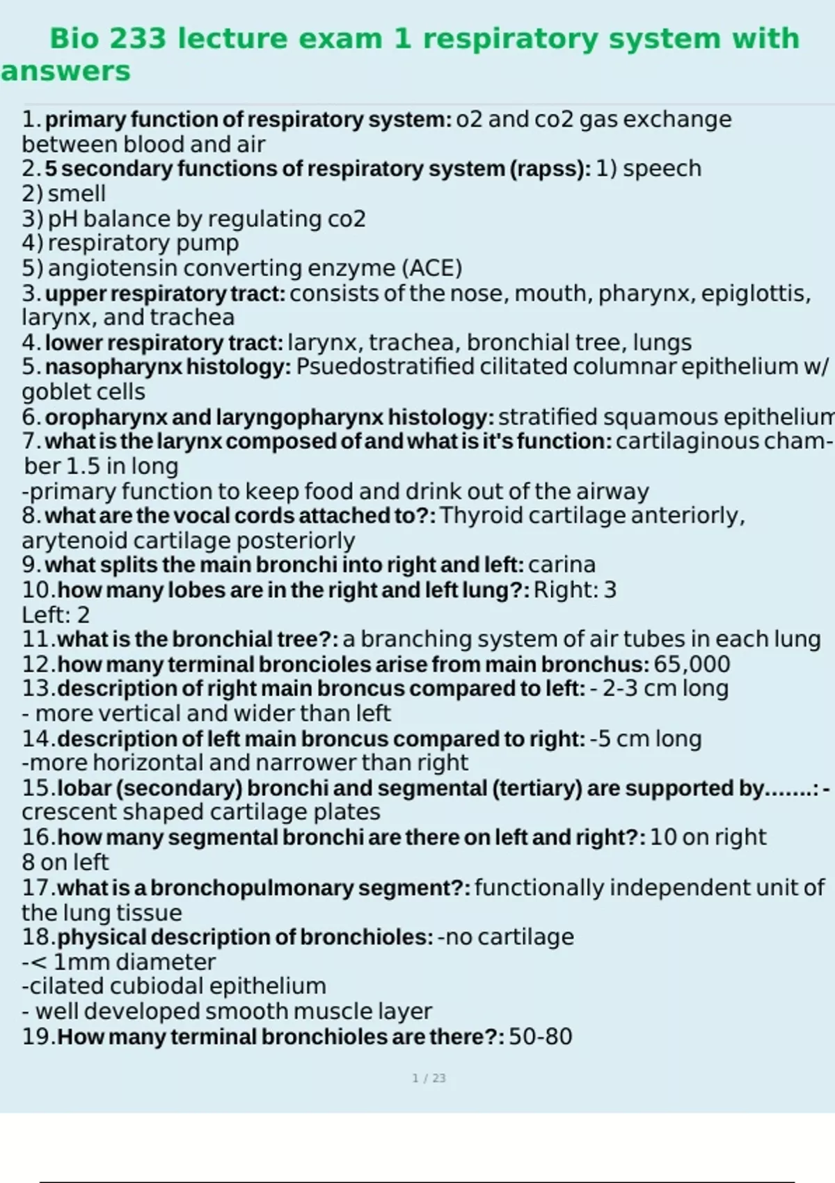 19.How many terminal bronchioles are there?: 50-80 | | | | | |