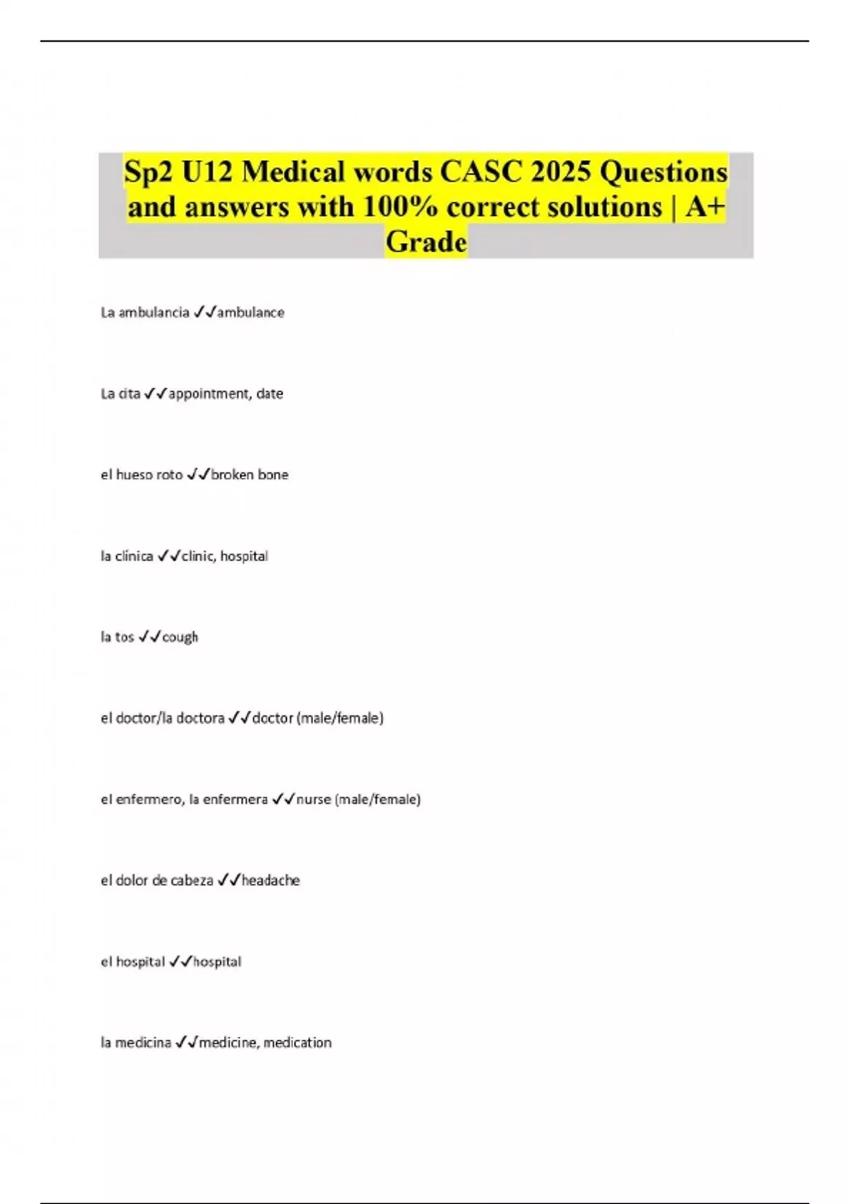Sp2 U12 Medical words CASC 2025 Questions and answers with 100% correct solutions | A+ Grade