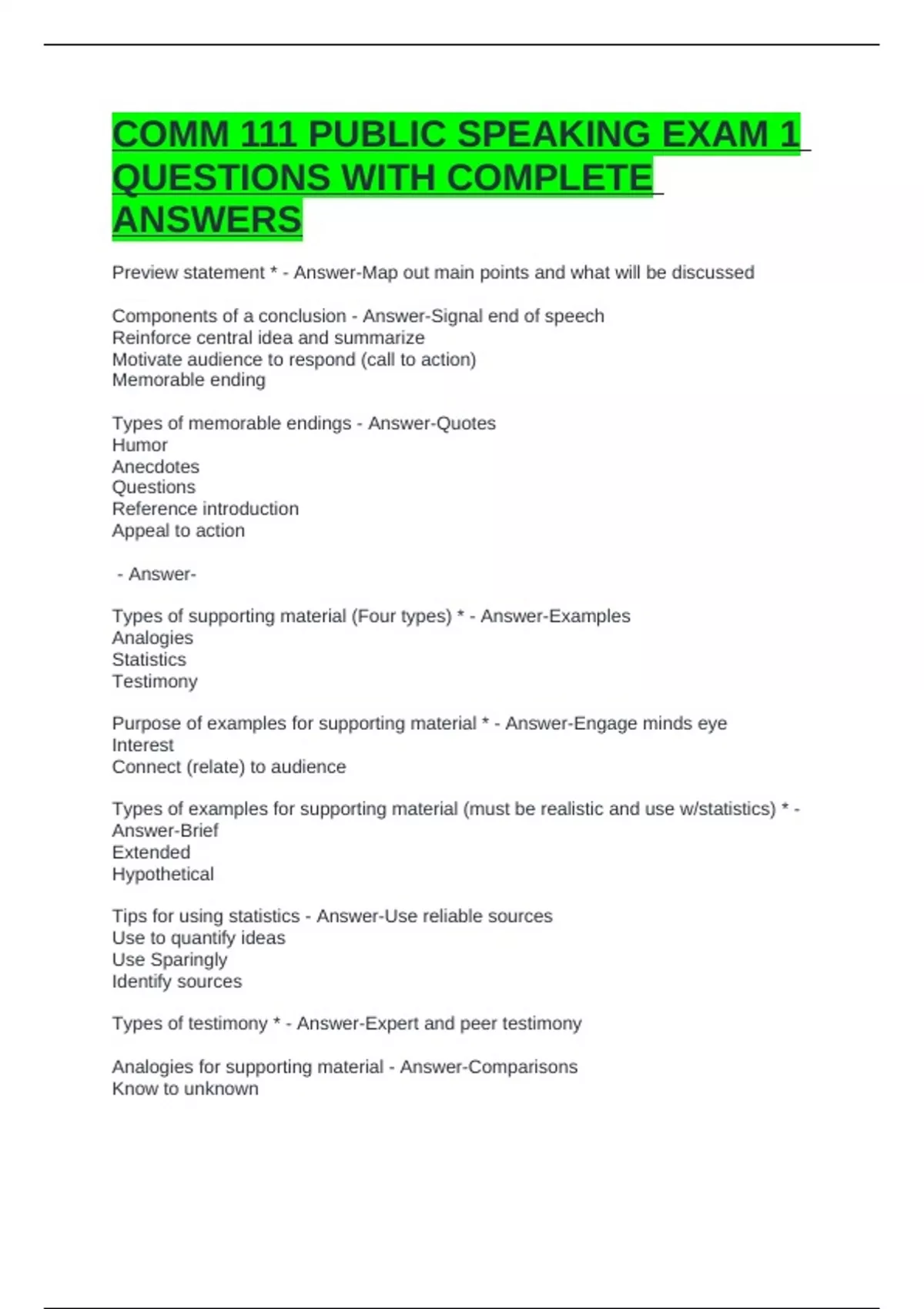 COMM 111 PUBLIC SPEAKING EXAM 1
