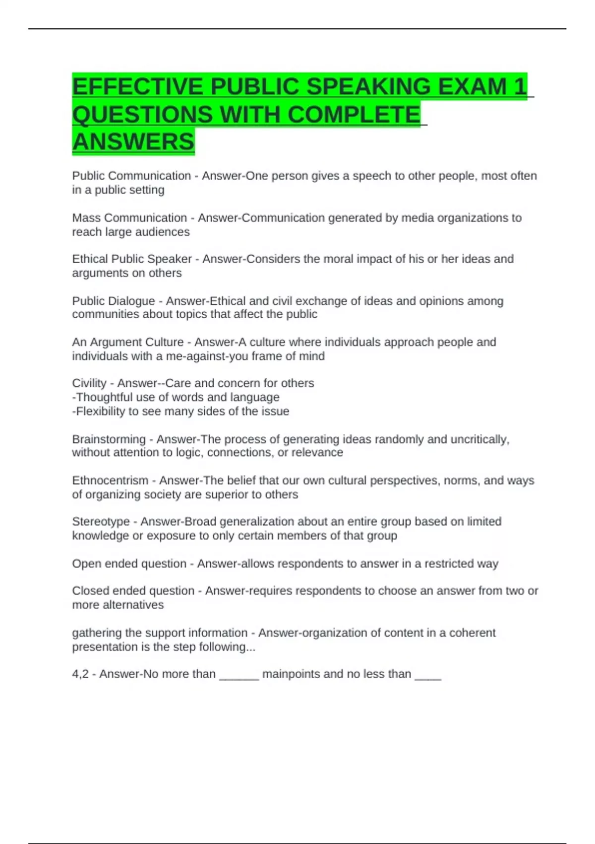 EFFECTIVE PUBLIC SPEAKING EXAM 1