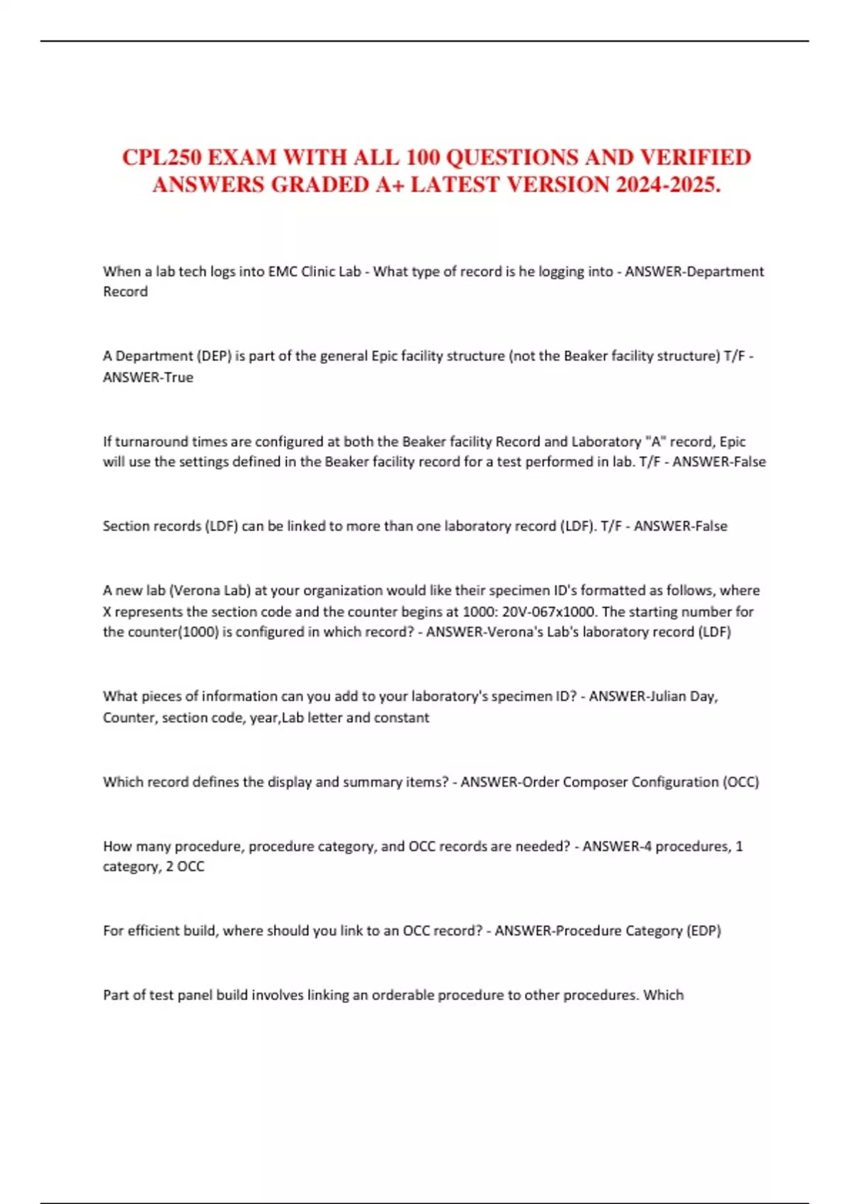 CPL250 EXAM WITH ALL 100 QUESTIONS AND VERIFIED