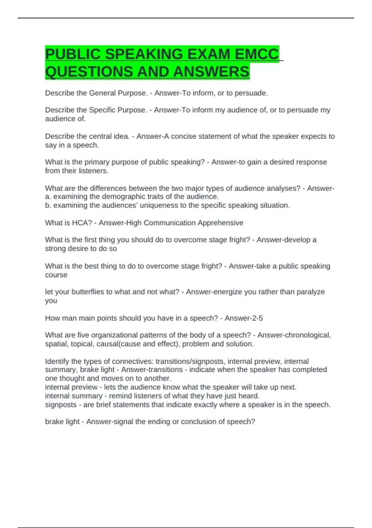 PUBLIC SPEAKING EXAM EMCC