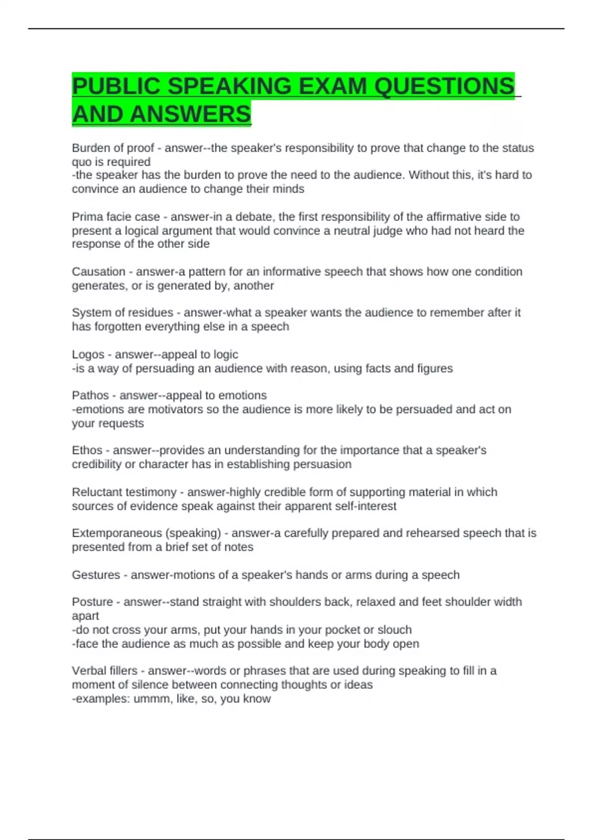 PUBLIC SPEAKING EXAM QUESTIONS