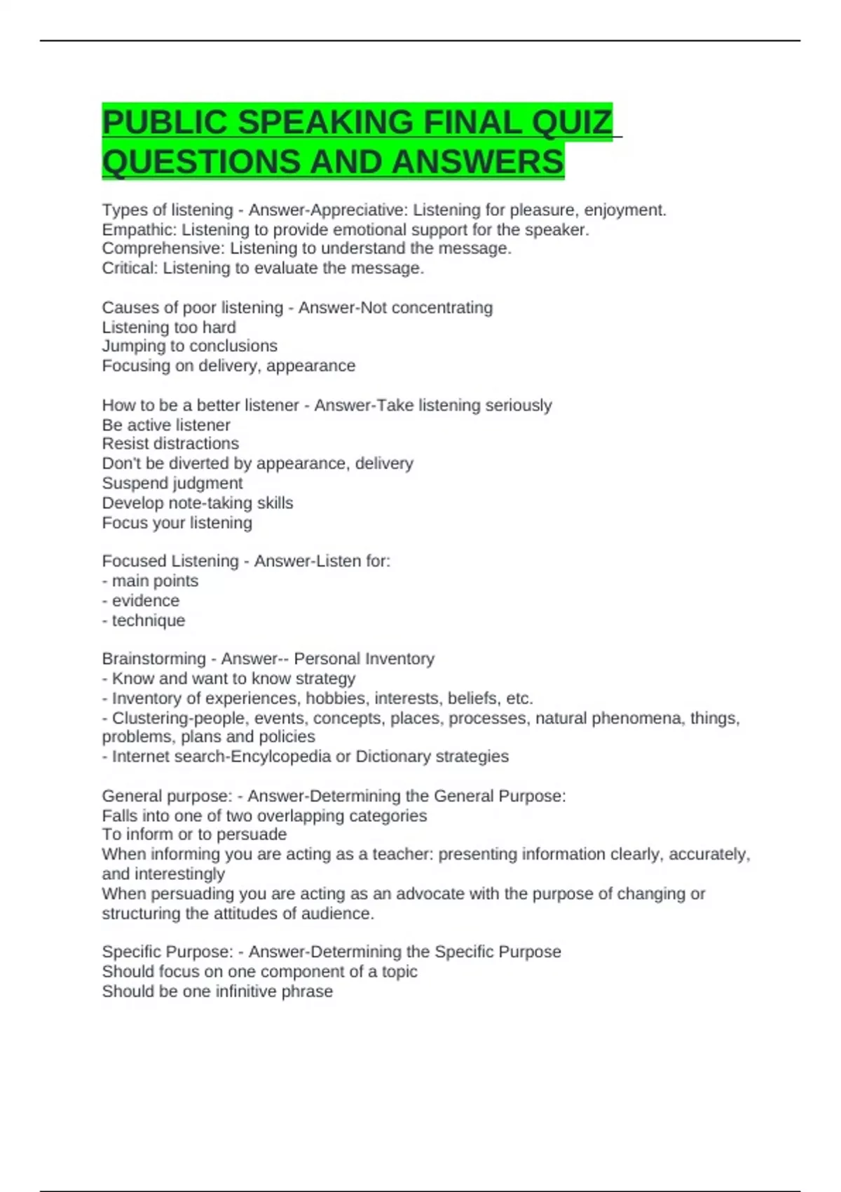 PUBLIC SPEAKING FINAL QUIZ