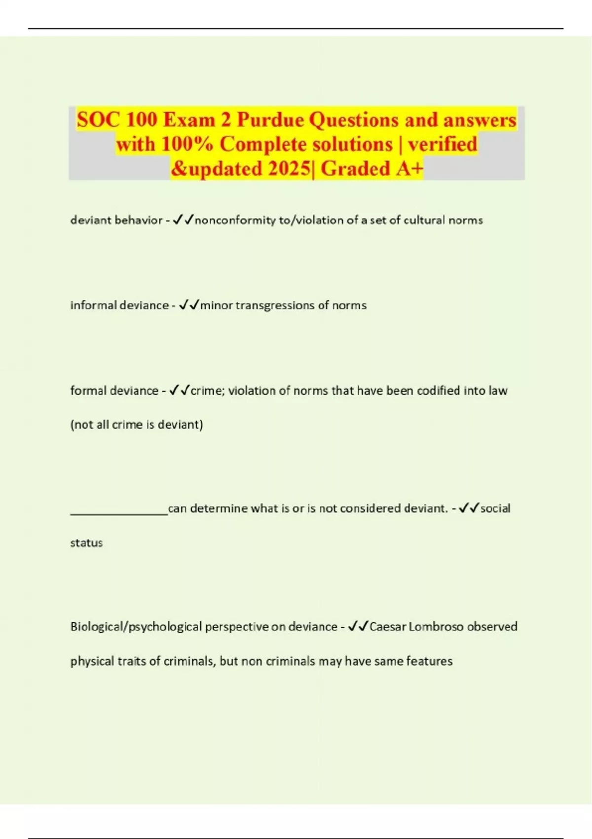 soc 100 exam 2 purdue questions and answers with 1