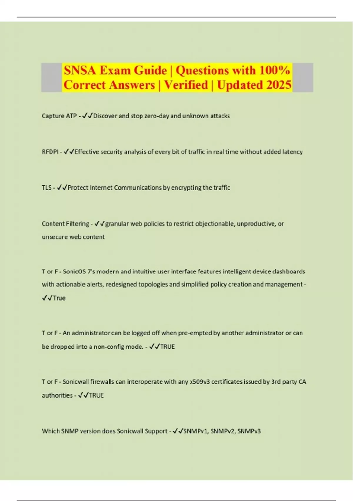 snsa exam guide questions with 100 correct answ