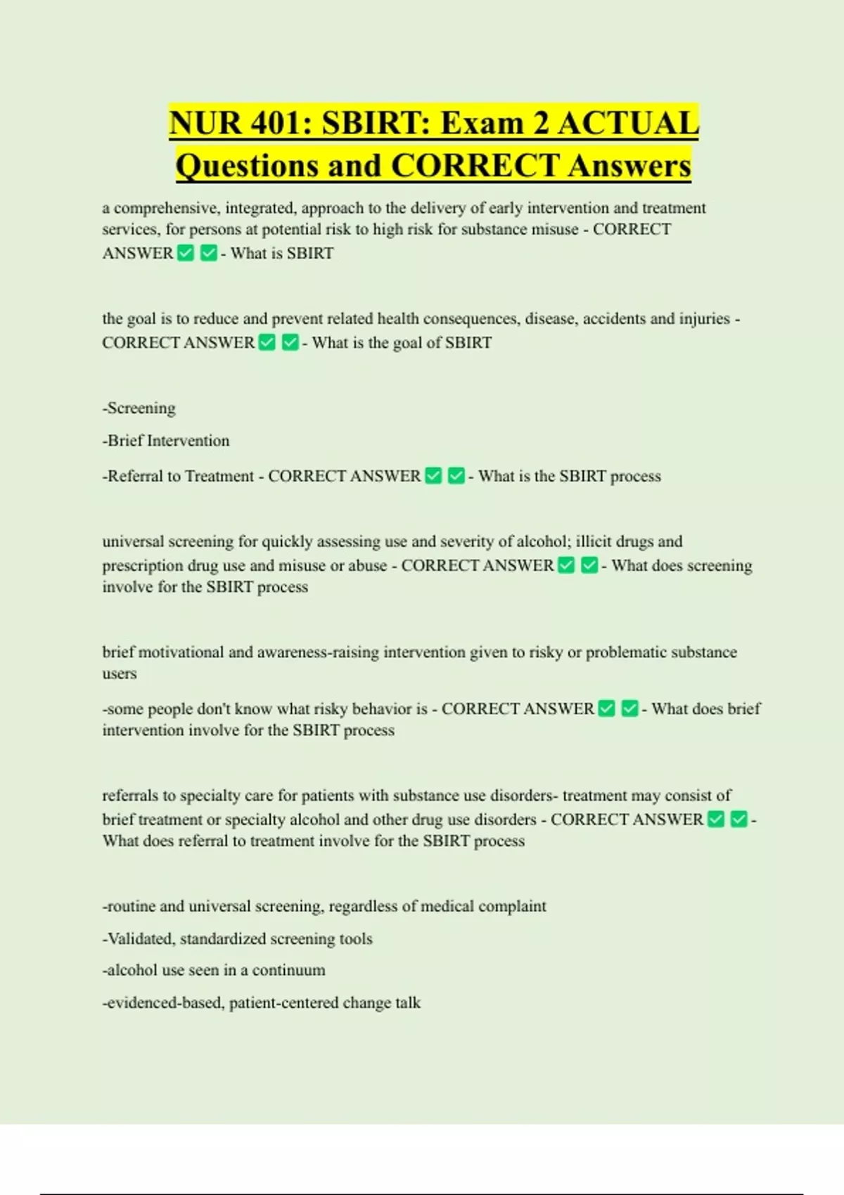 -ALl levels of nursing curricula should include SBIRT training - CORRECT ANSWER -