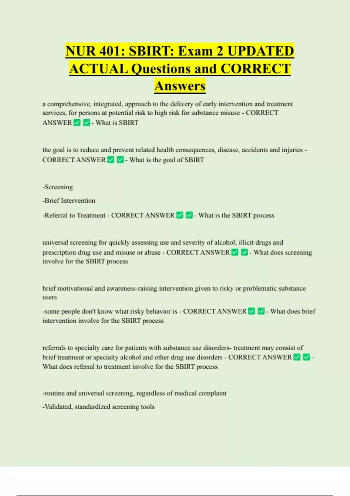 -ALl levels of nursing curricula should include SBIRT training - CORRECT ANSWER -