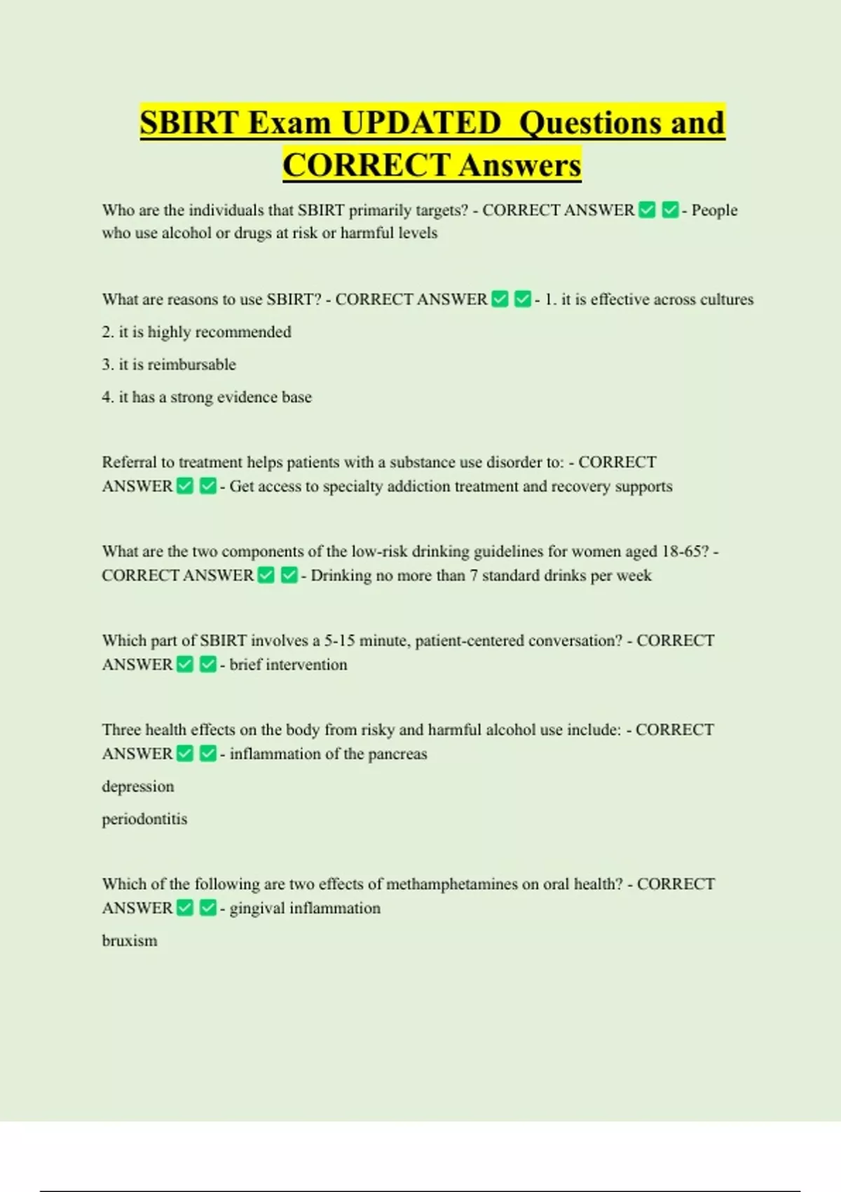 What are reasons to use SBIRT? - CORRECT ANSWER - 1. it is effective across cultures