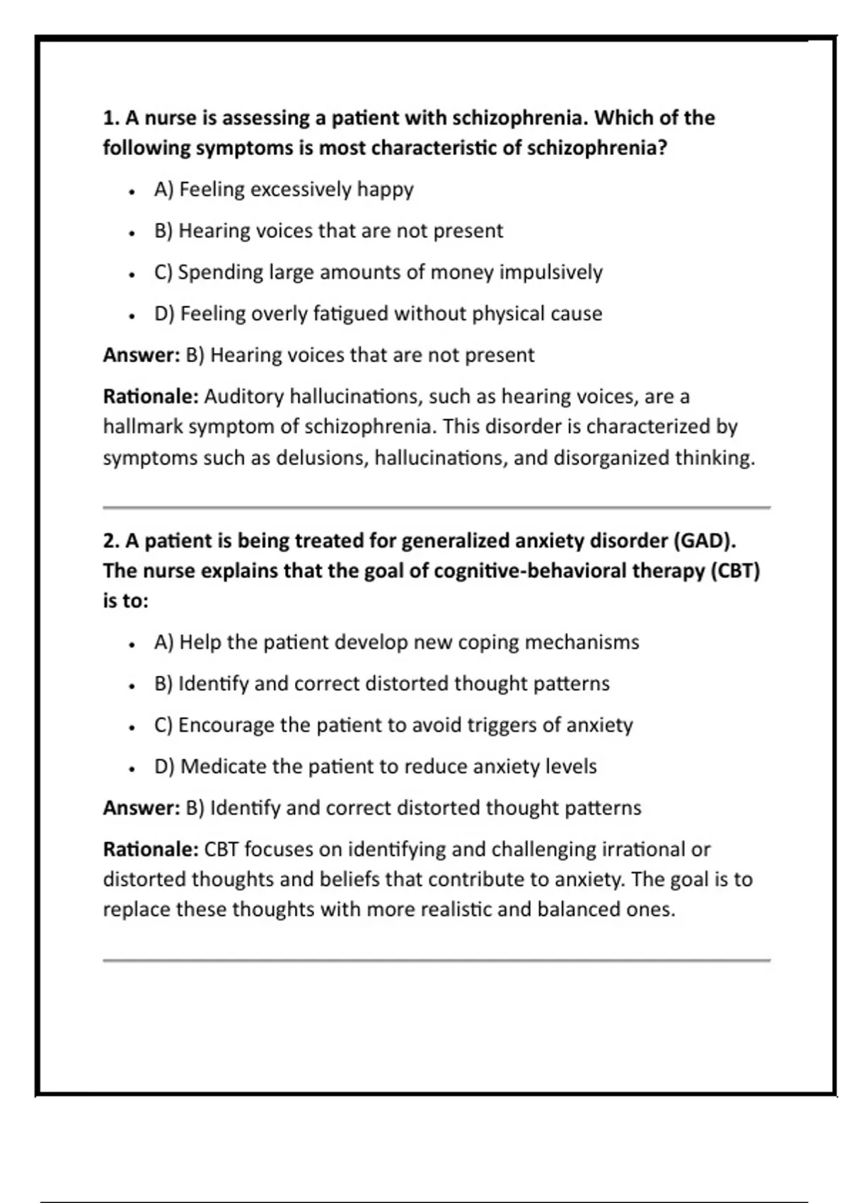 Latest NSG 221 Exam 4: Comprehensive Mental Health Q&A for 2024/2025 (Grade A Certified!!!)