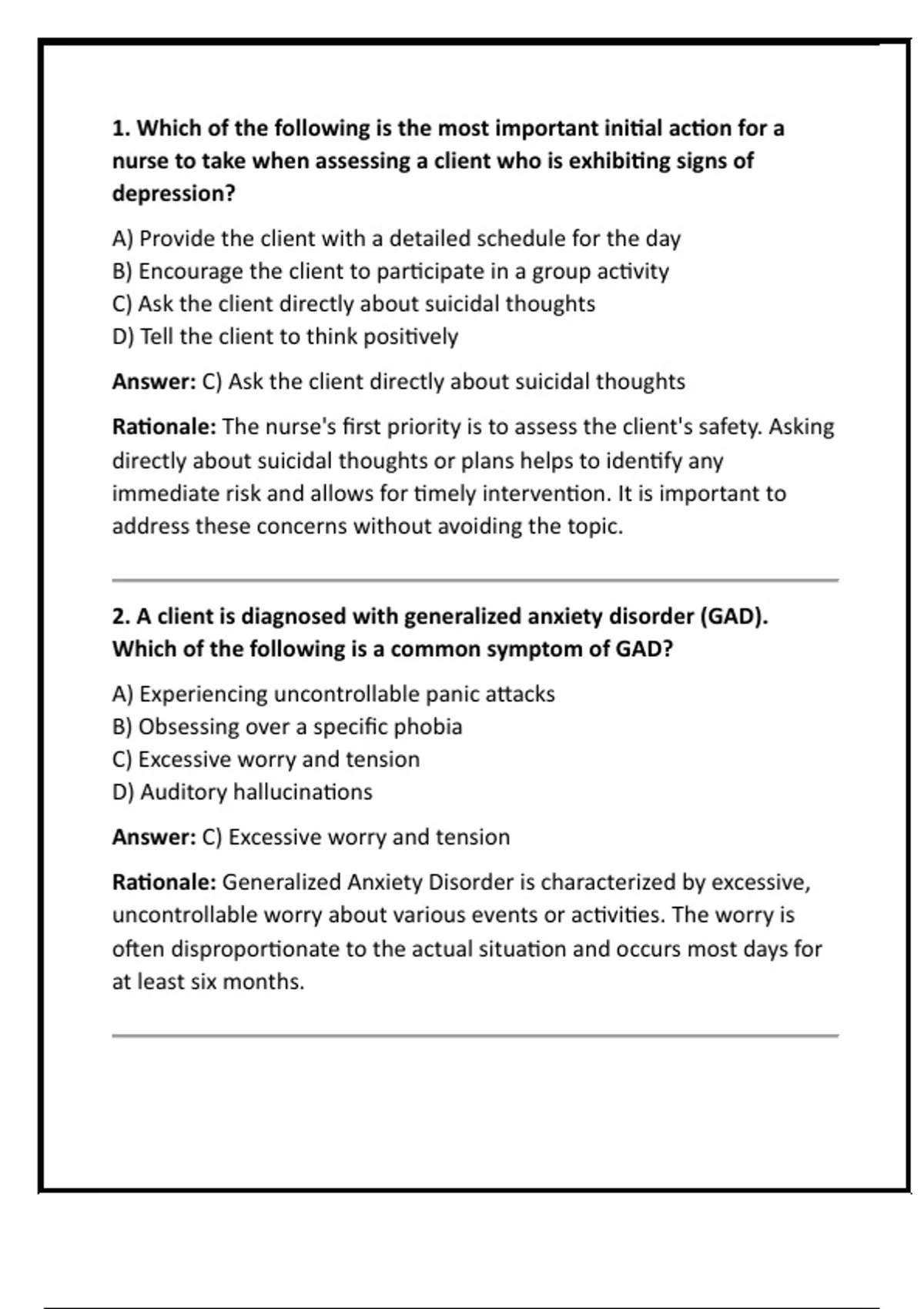 2. A client is diagnosed with generalized anxiety disorder (GAD).