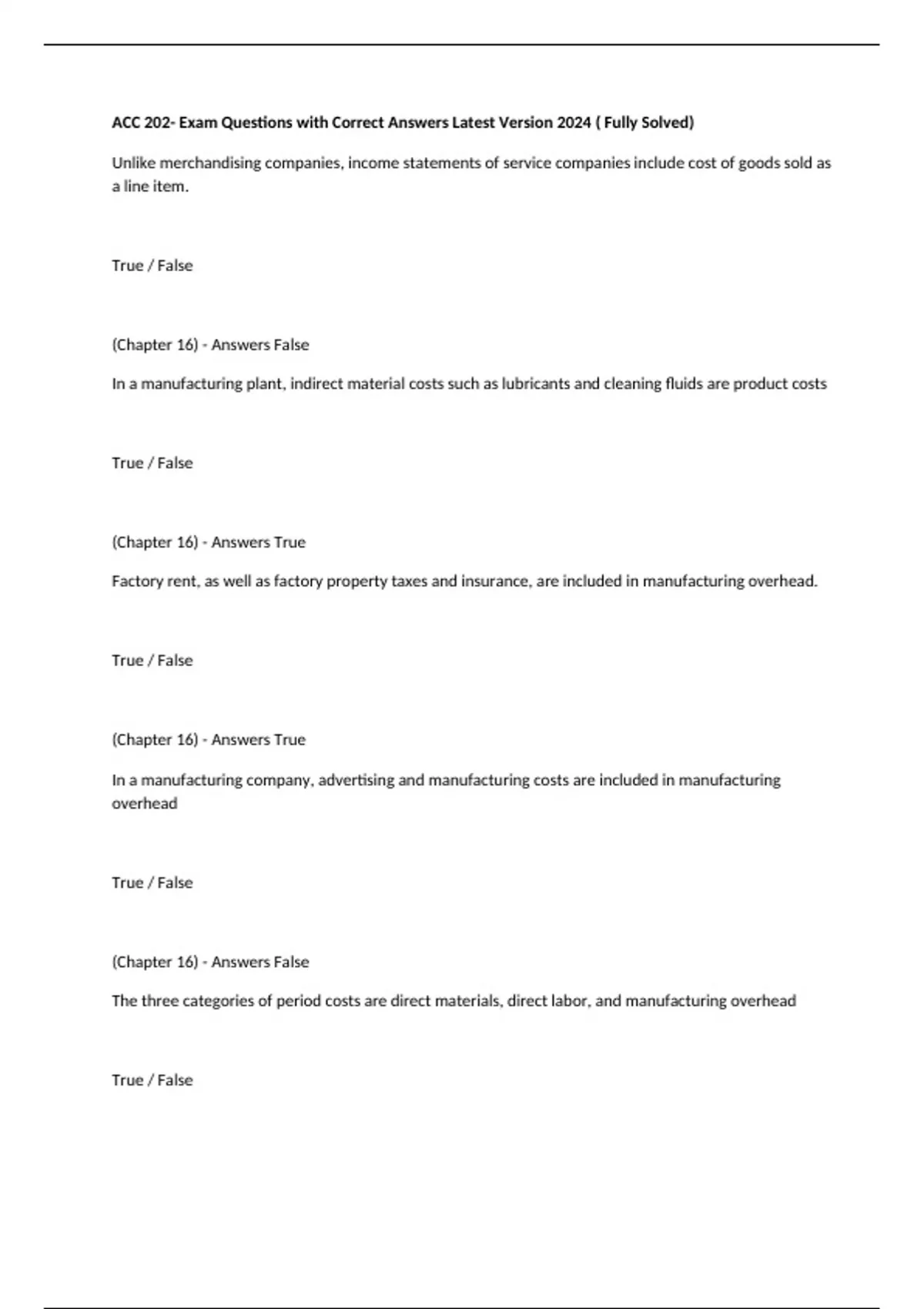 ,(Chapter 16) - Answers False