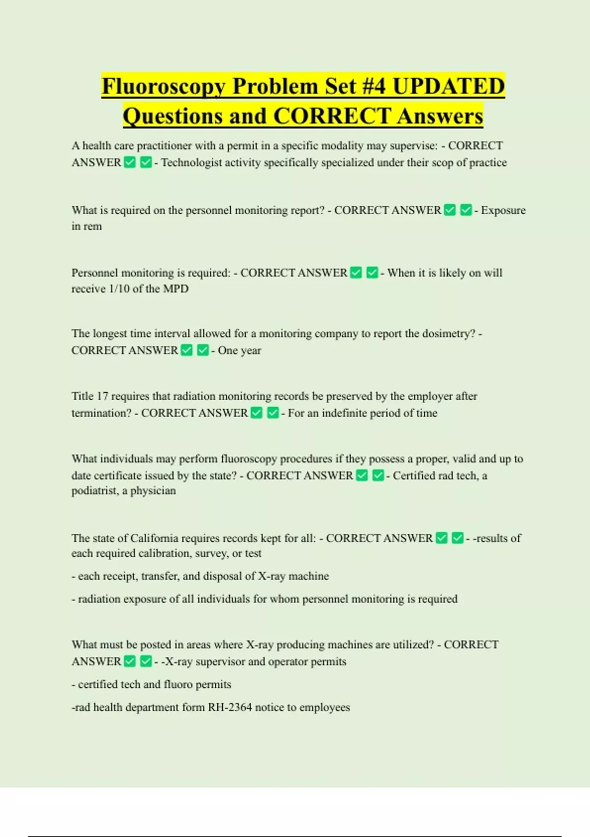 Fluoroscopy Problem Set #4 UPDATED Questions and CORRECT Answers