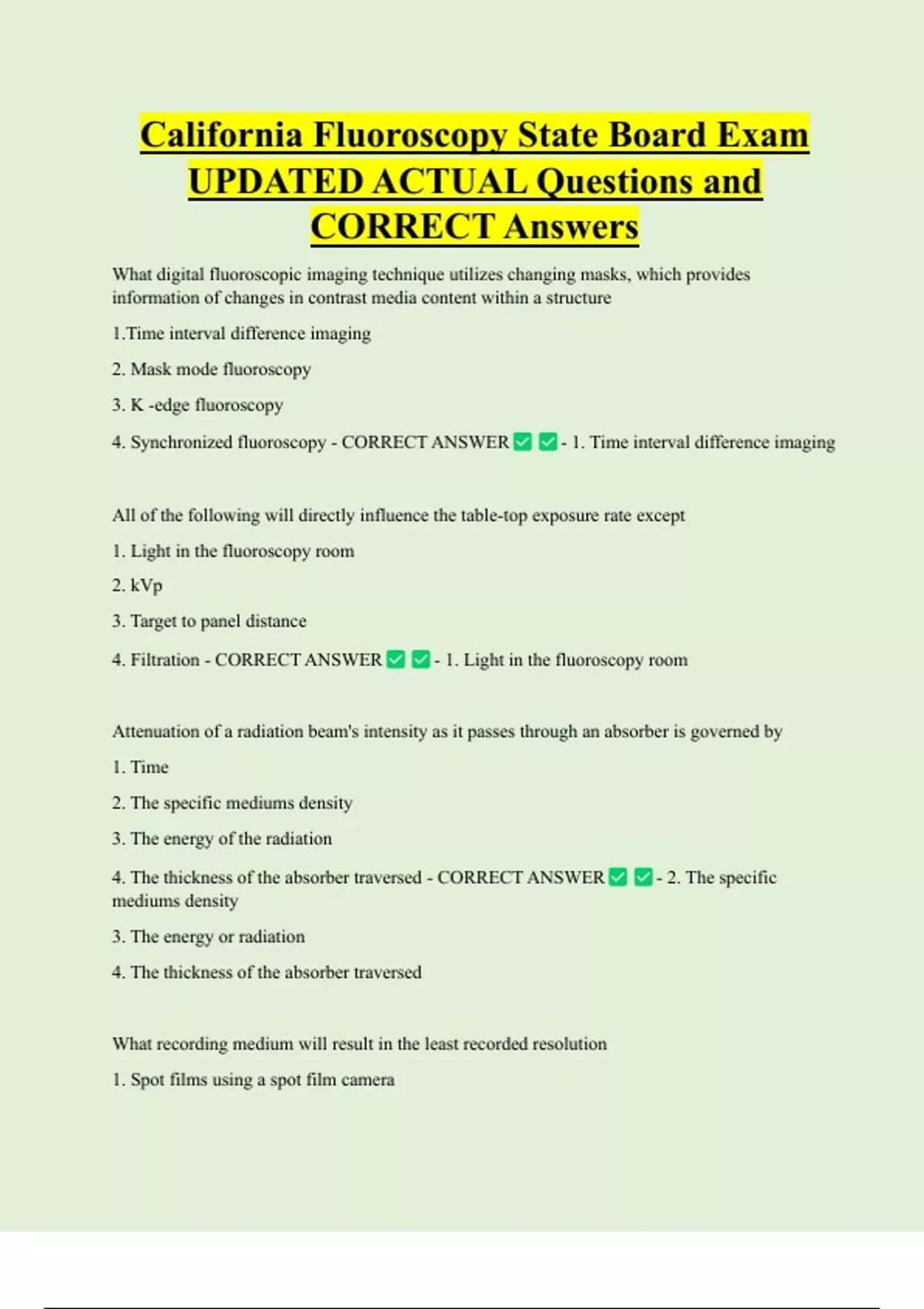 California Fluoroscopy State Board Exam UPDATED ACTUAL Questions and CORRECT Answers