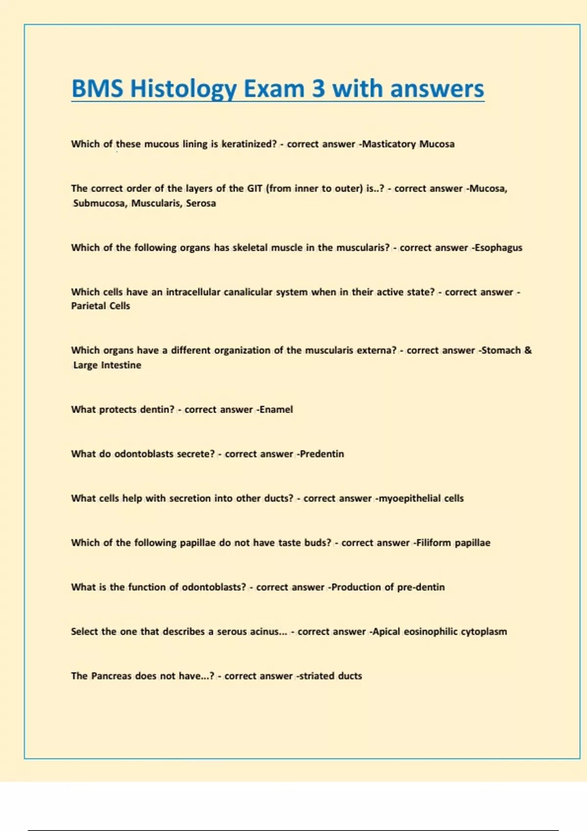 BMS Histology Exam 3 with answers