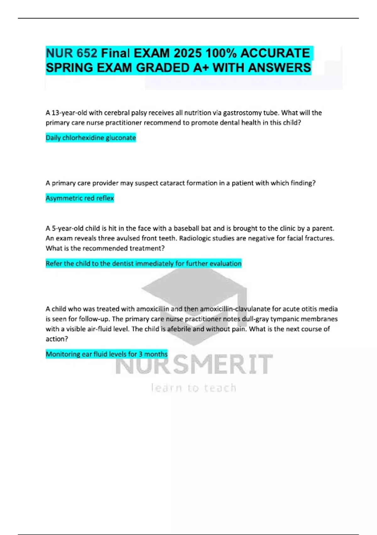 NUR 652 Final EXAM 2025 100% ACCURATE SPRING EXAM GRADED A+ WITH ANSWERS
