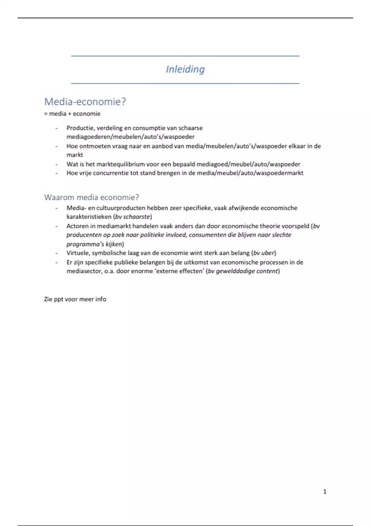 Dit document bevat een samenvatting van het vak Media-Economie, academiejaar , aan de VUB gedoceerd door prof. Annelien Smets. Dankzij deze samenvatting ben ik direct in de eerste zit geslaagd.