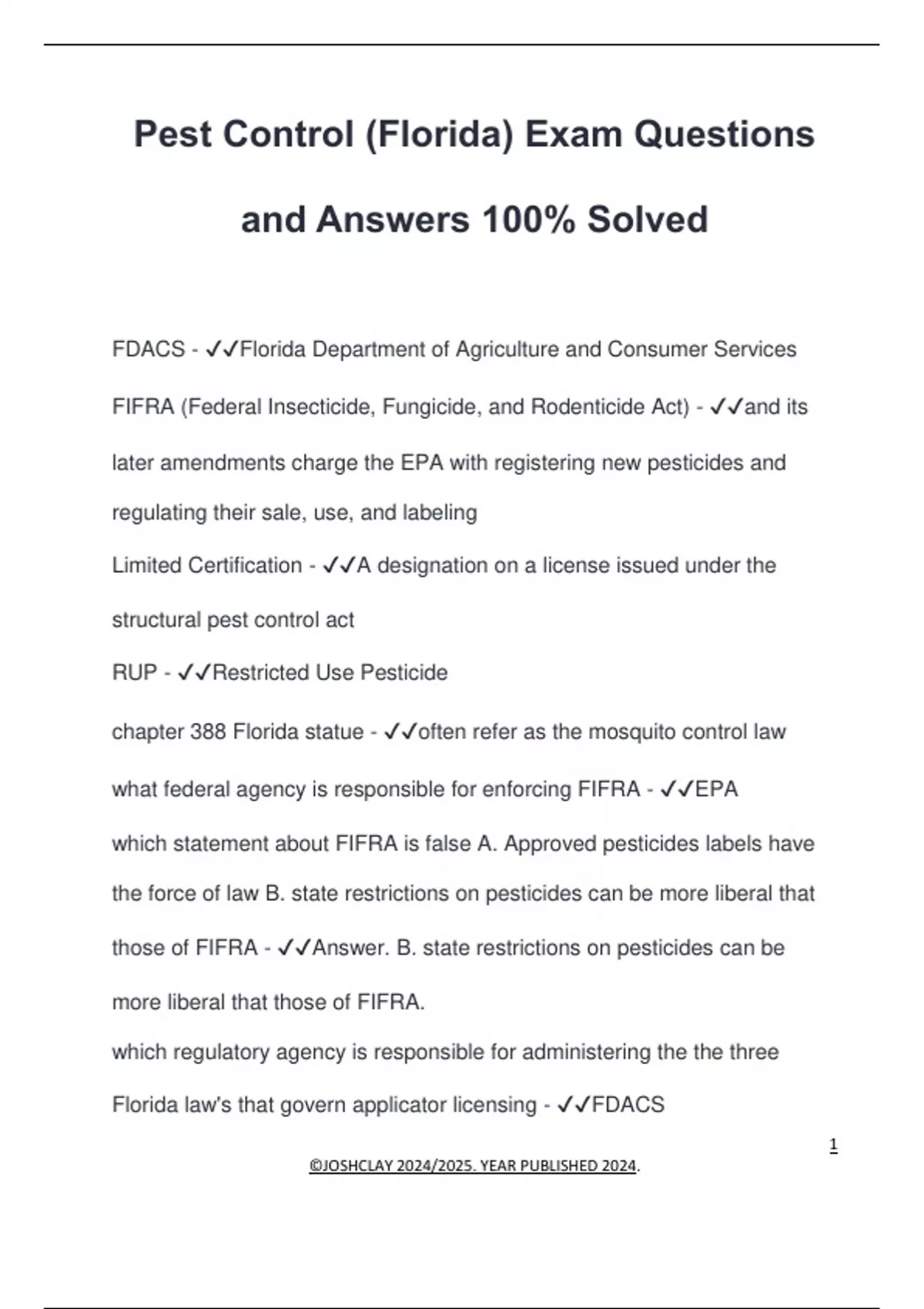 those of FIFRA - ✔✔Answer. B. state restrictions on pesticides can be