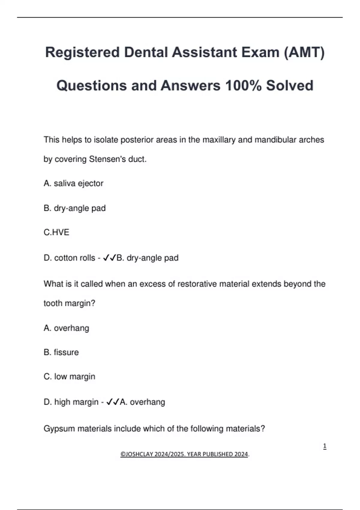 D. cotton rolls - ✔✔B. dry-angle pad