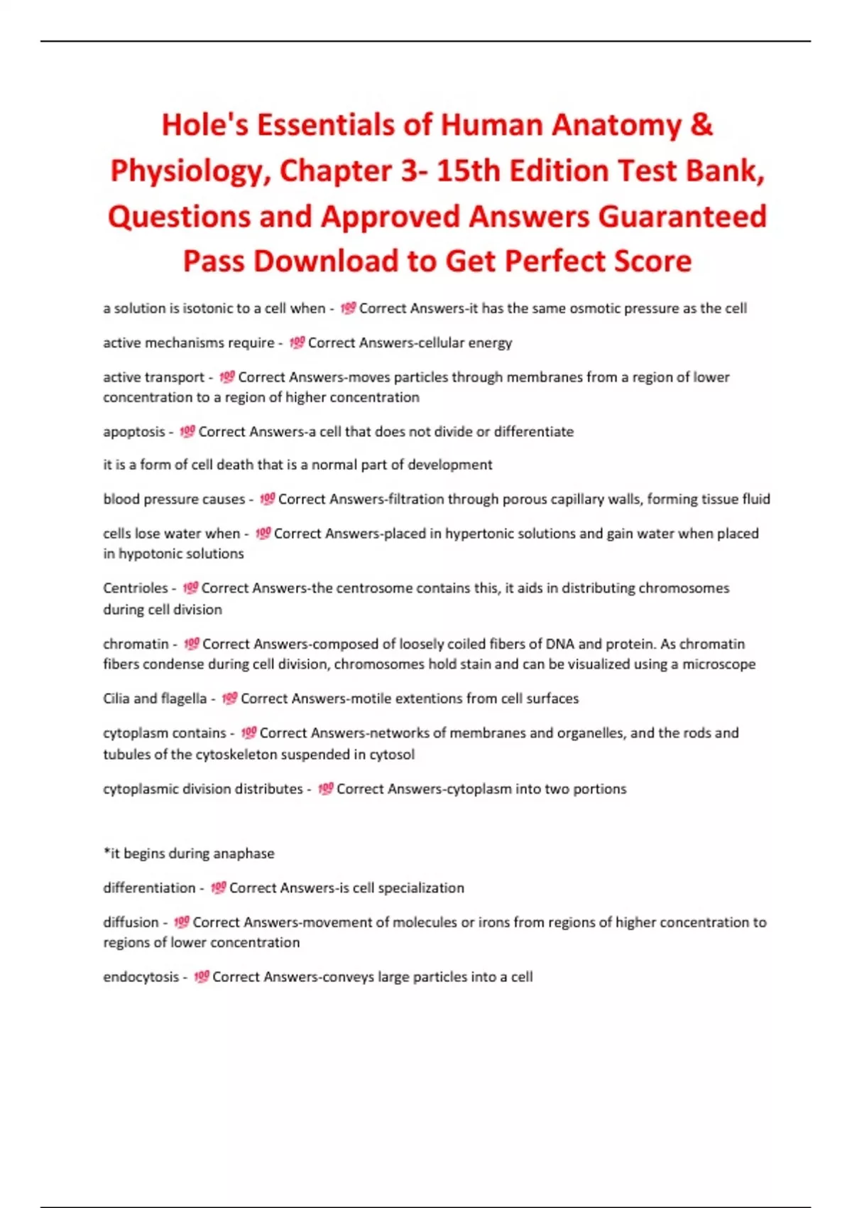 Physiology, Chapter 3- 15th Edition Test Bank,