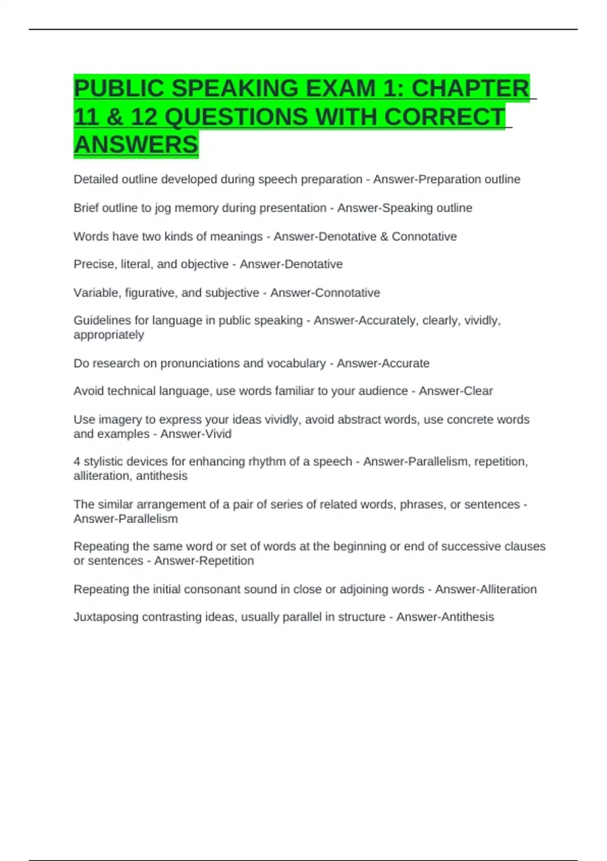 PUBLIC SPEAKING EXAM 1: CHAPTER