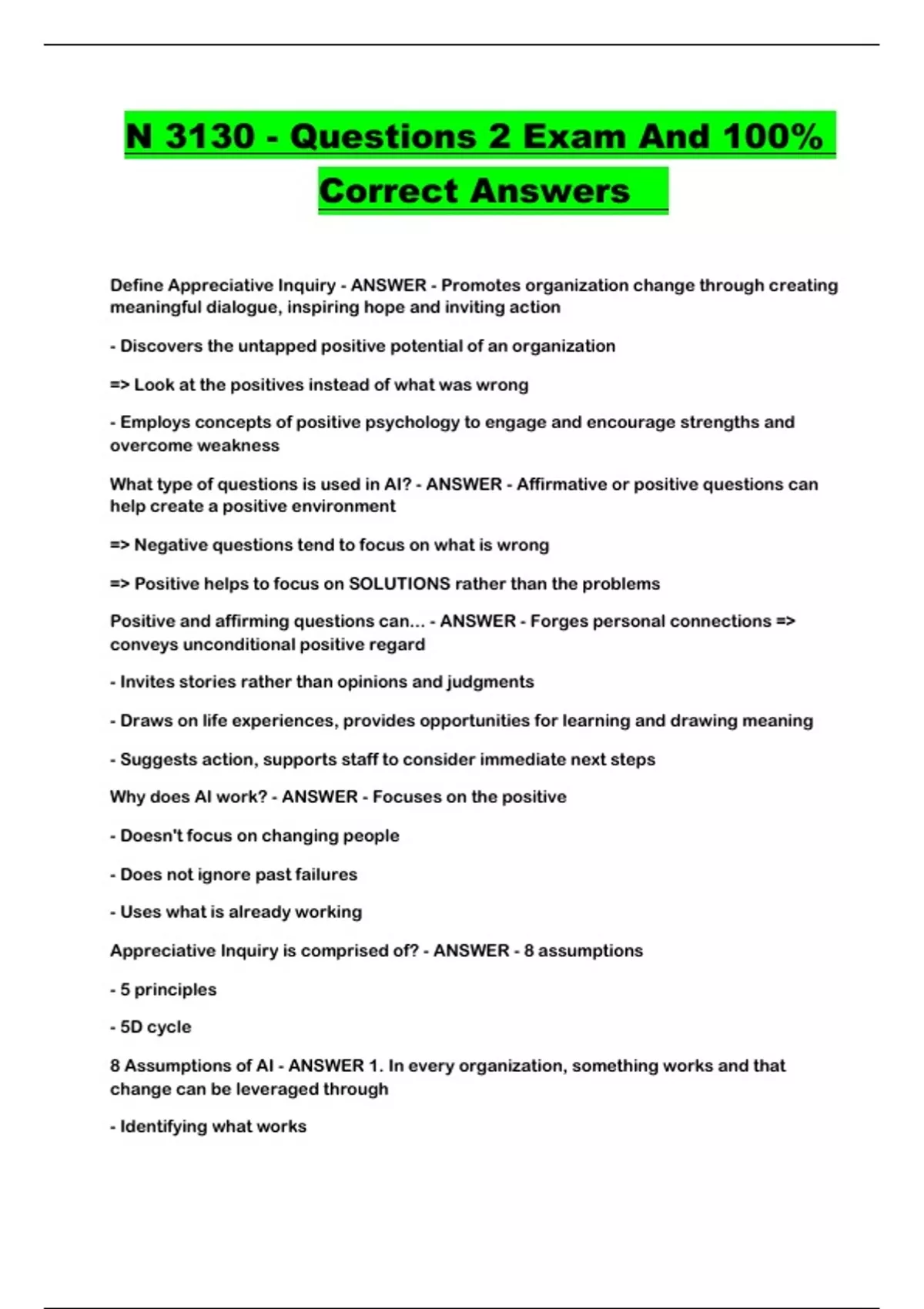 N 3130 - Questions 2 Exam And 100% Correct Answers ...