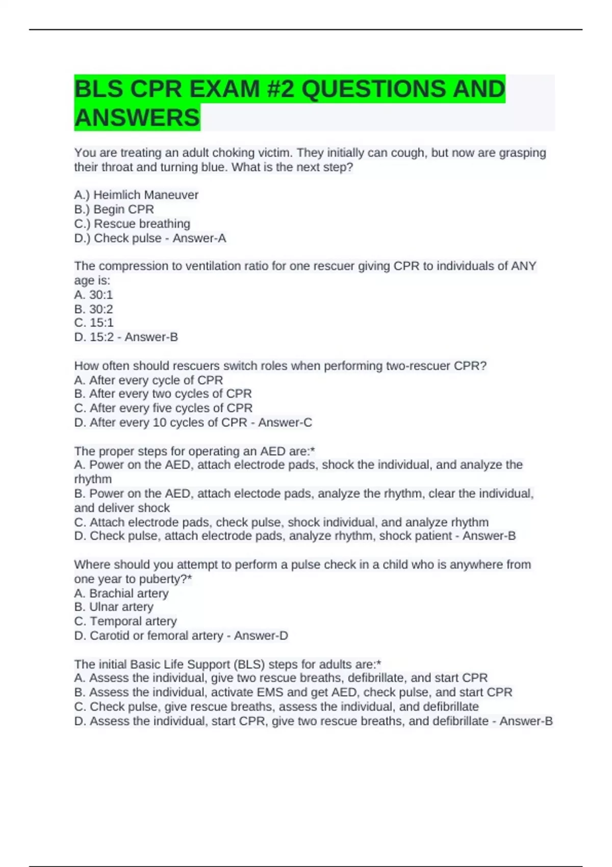 BLS CPR EXAM #2 QUESTIONS AND ANSWERS