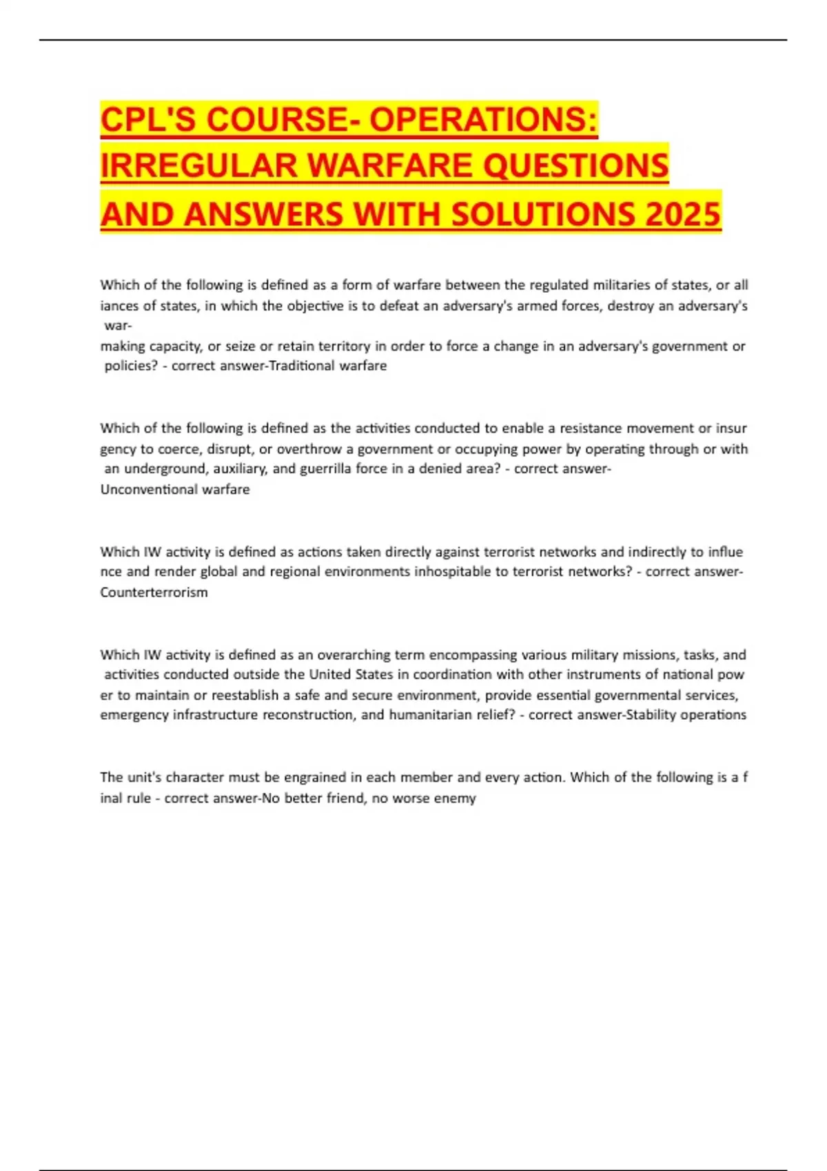 IRREGULAR WARFARE QUESTIONS