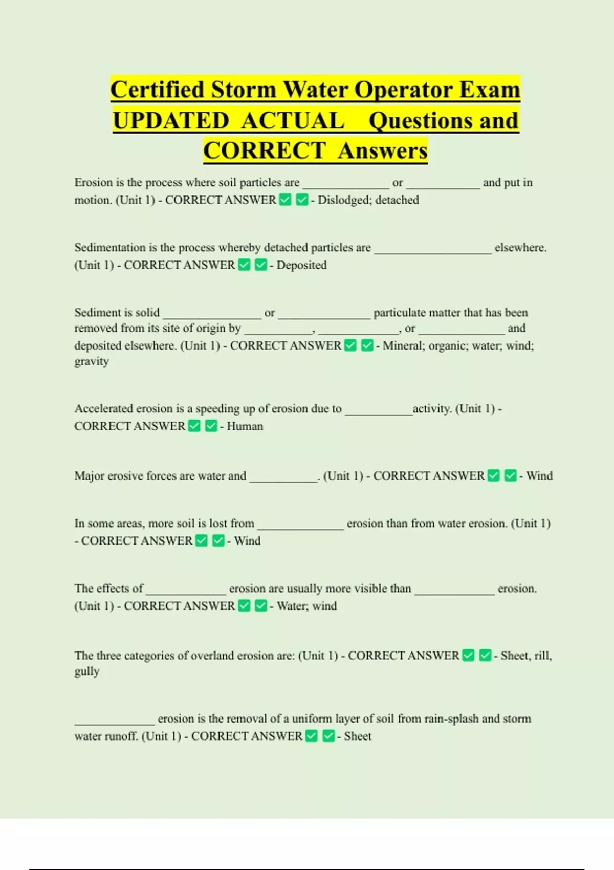 water runoff. (Unit 1) - CORRECT ANSWER - Sheet