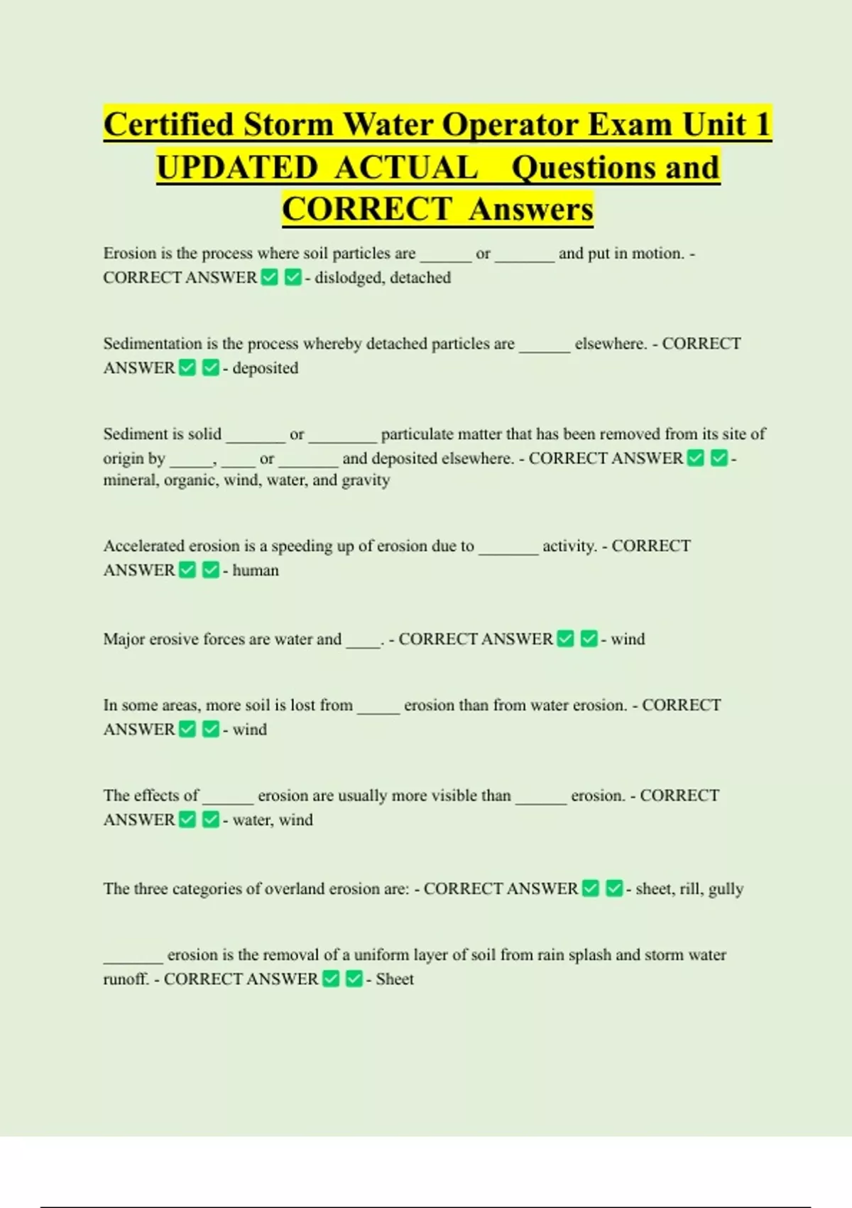 The three categories of overland erosion are: - CORRECT ANSWER - sheet, rill, gully