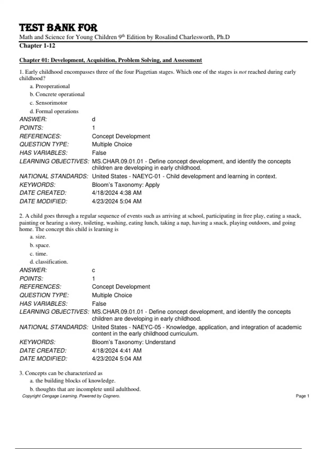 Copyright Cengage Learning. Powered by Cognero. Page 1