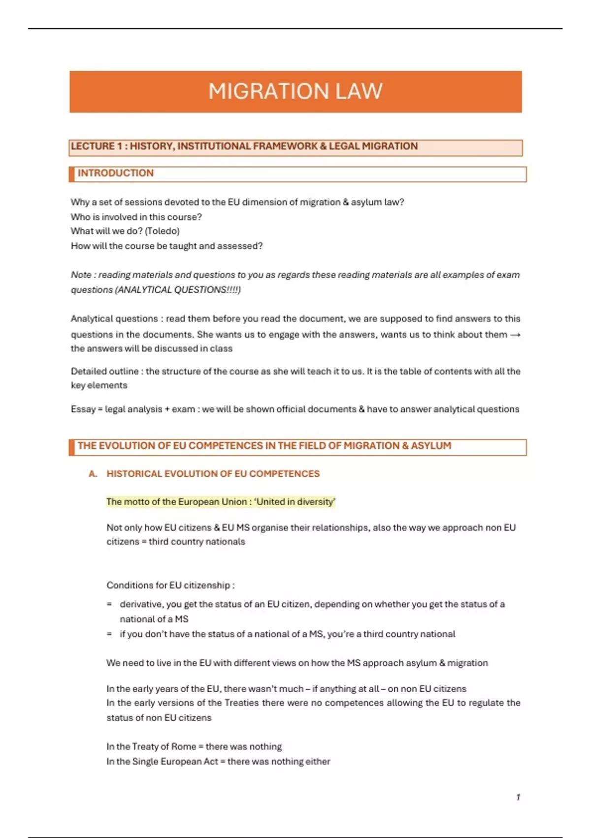LECTURE 1 : HISTORY, INSTITUTIONAL FRAMEWORK & LEGAL MIGRATION