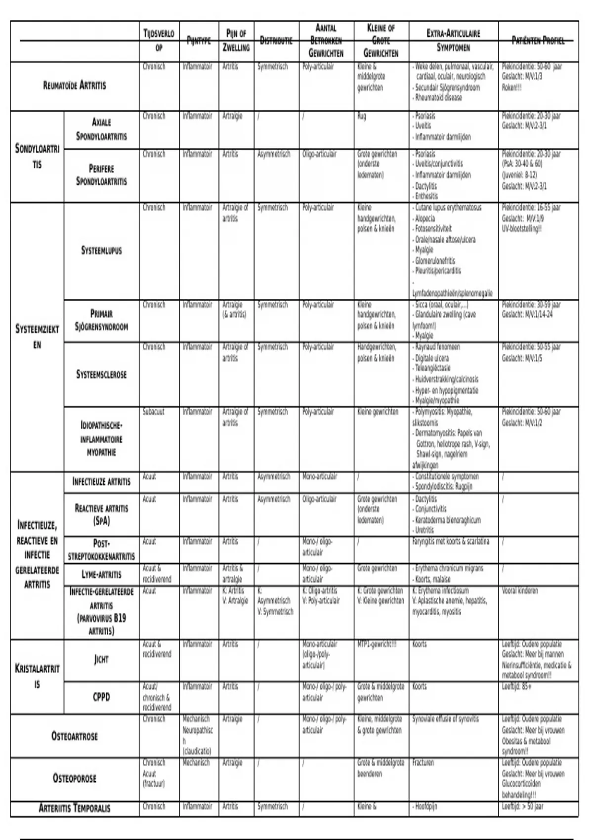 ARTERIITIS TEMPORALIS Chronisch Inflammatoir Artritis Symmetrisch / Kleine & - Hoofdpijn Leeftijd: > 50 jaar