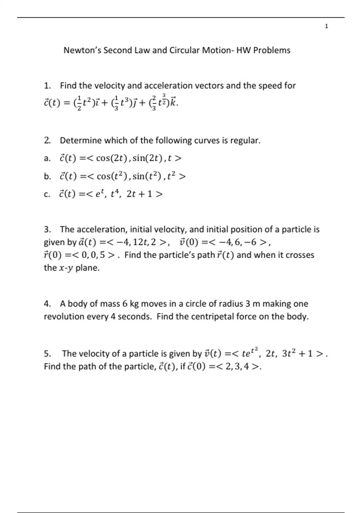 b. 𝑐⃗(𝑡) =< cos(𝑡 2 ) , sin(𝑡 2 ) , 𝑡 2 >
