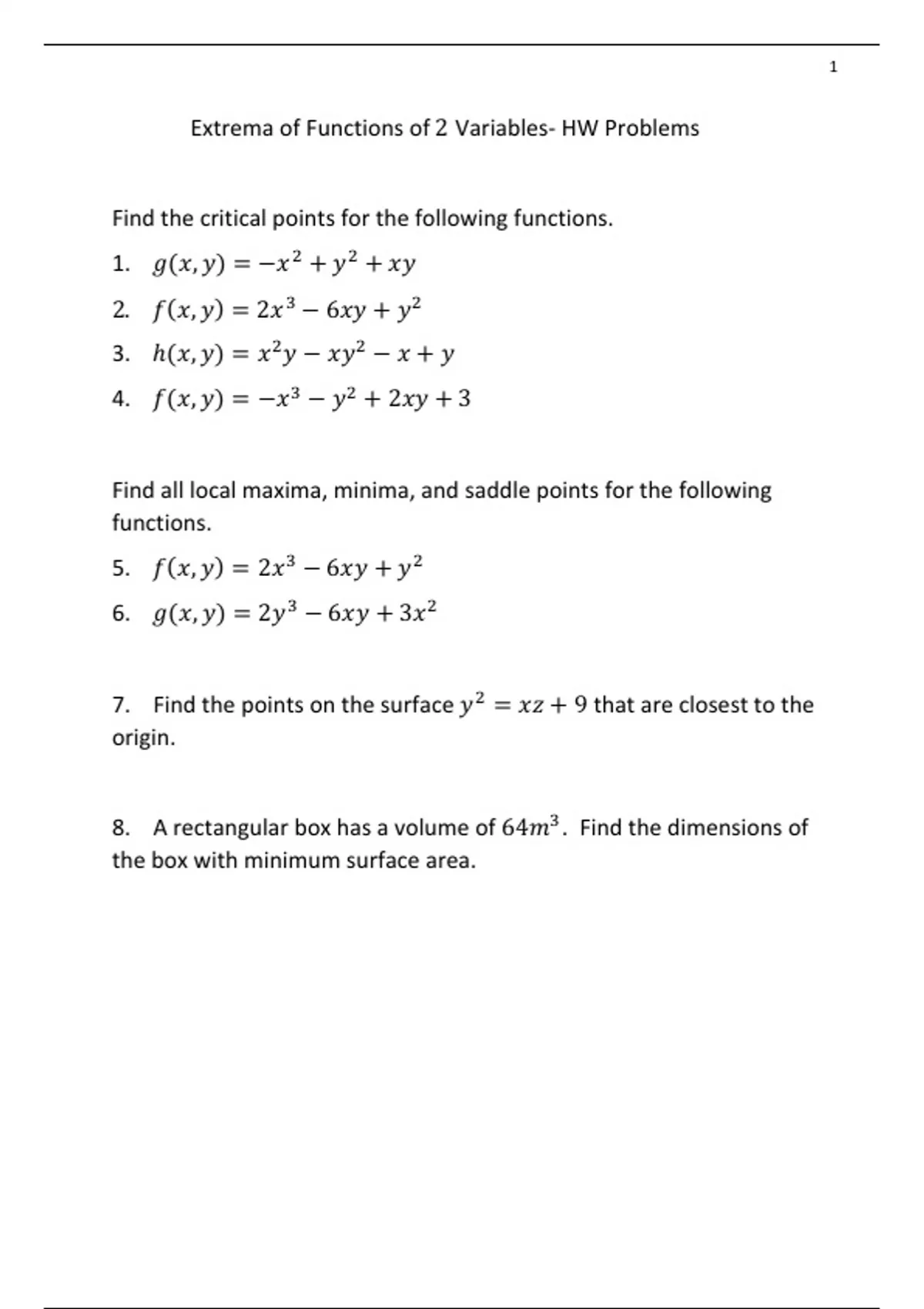 2. 𝑓(𝑥, 𝑦) = 2𝑥 3 − 6𝑥𝑦 + 𝑦 2
