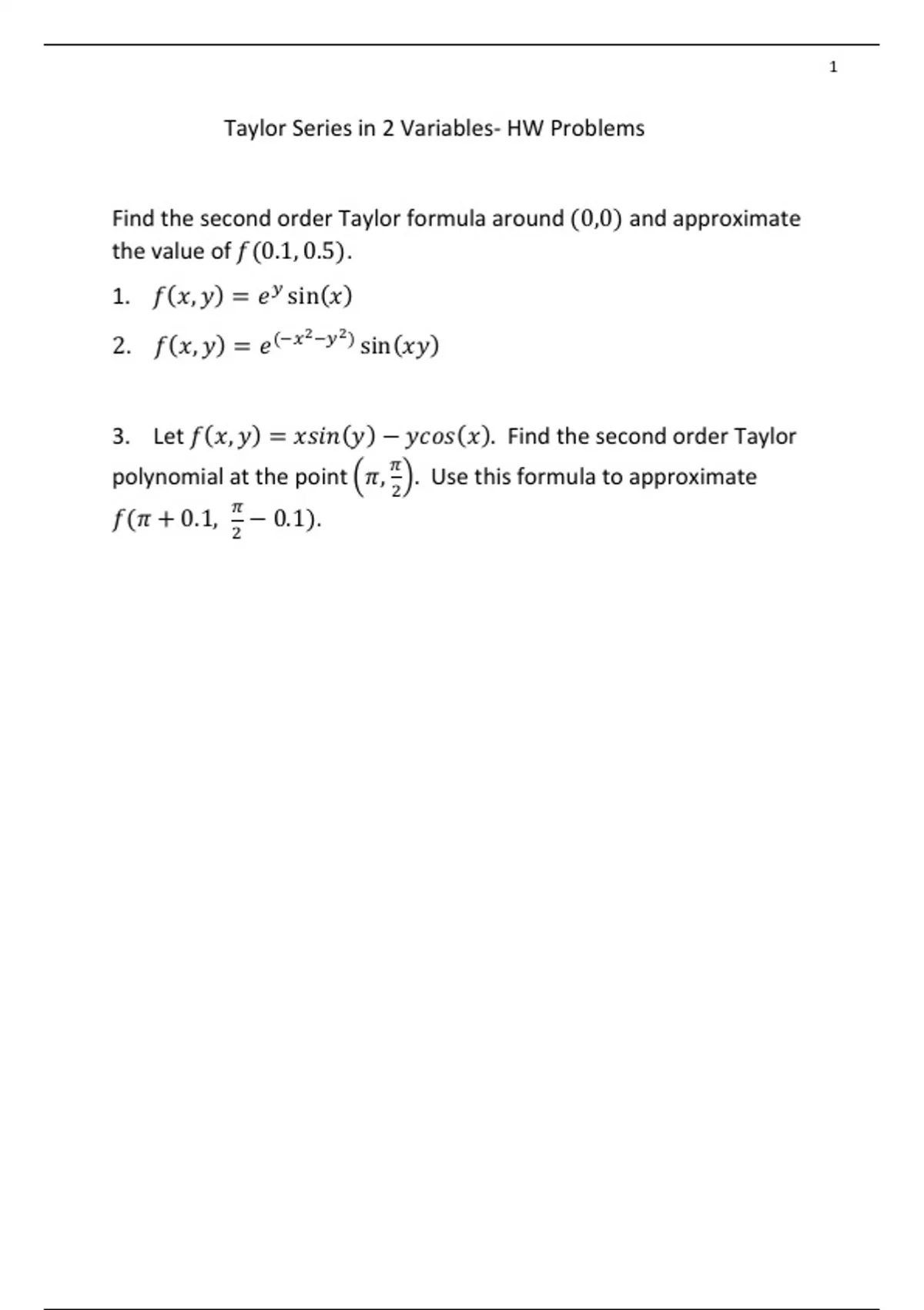 3. Let 𝑓 (𝑥, 𝑦) = 𝑥𝑠𝑖𝑛(𝑦) − 𝑦𝑐𝑜𝑠(𝑥 ). Find the second order Taylor