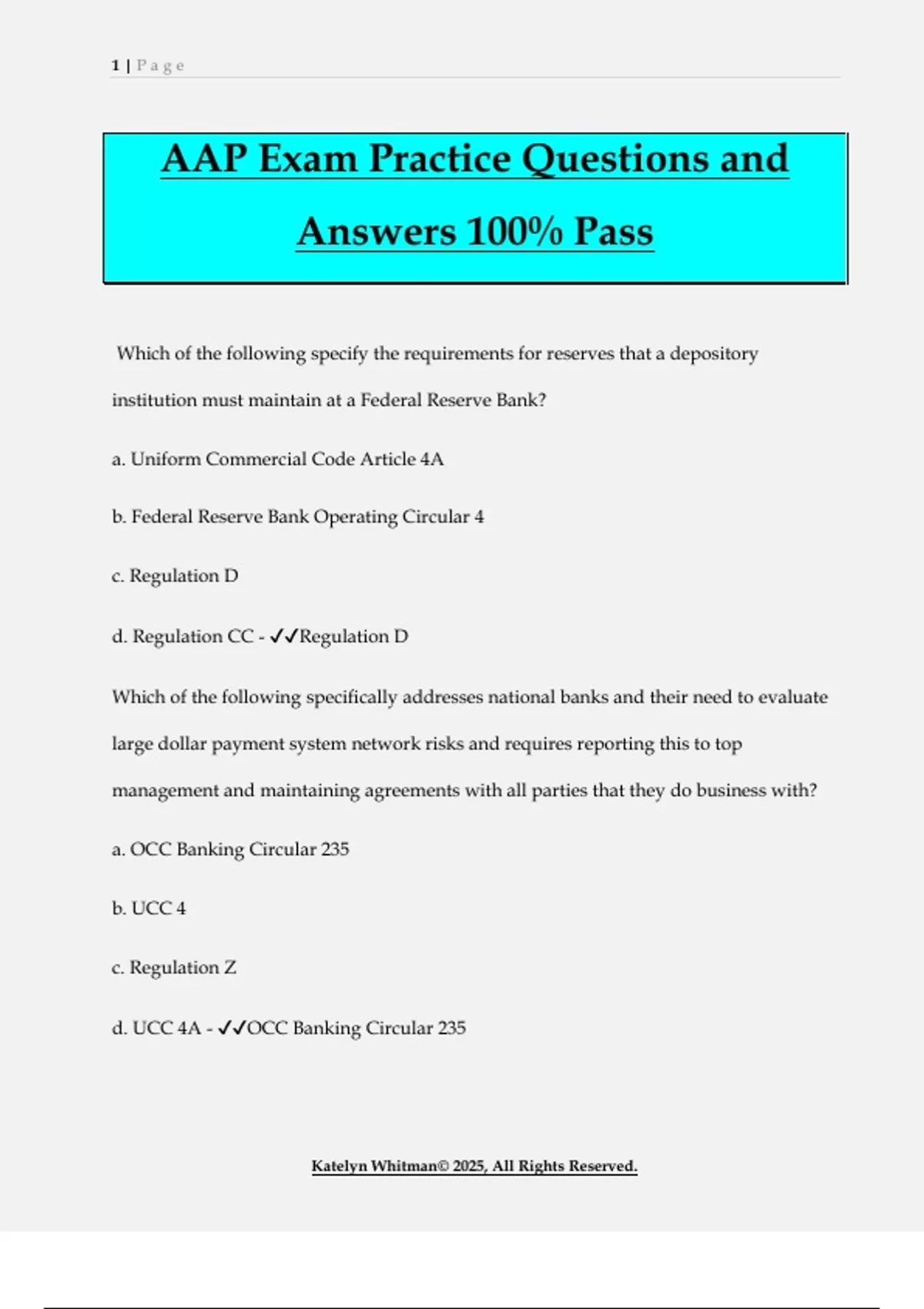 d. UCC 4A - ✔✔OCC Banking Circular 235