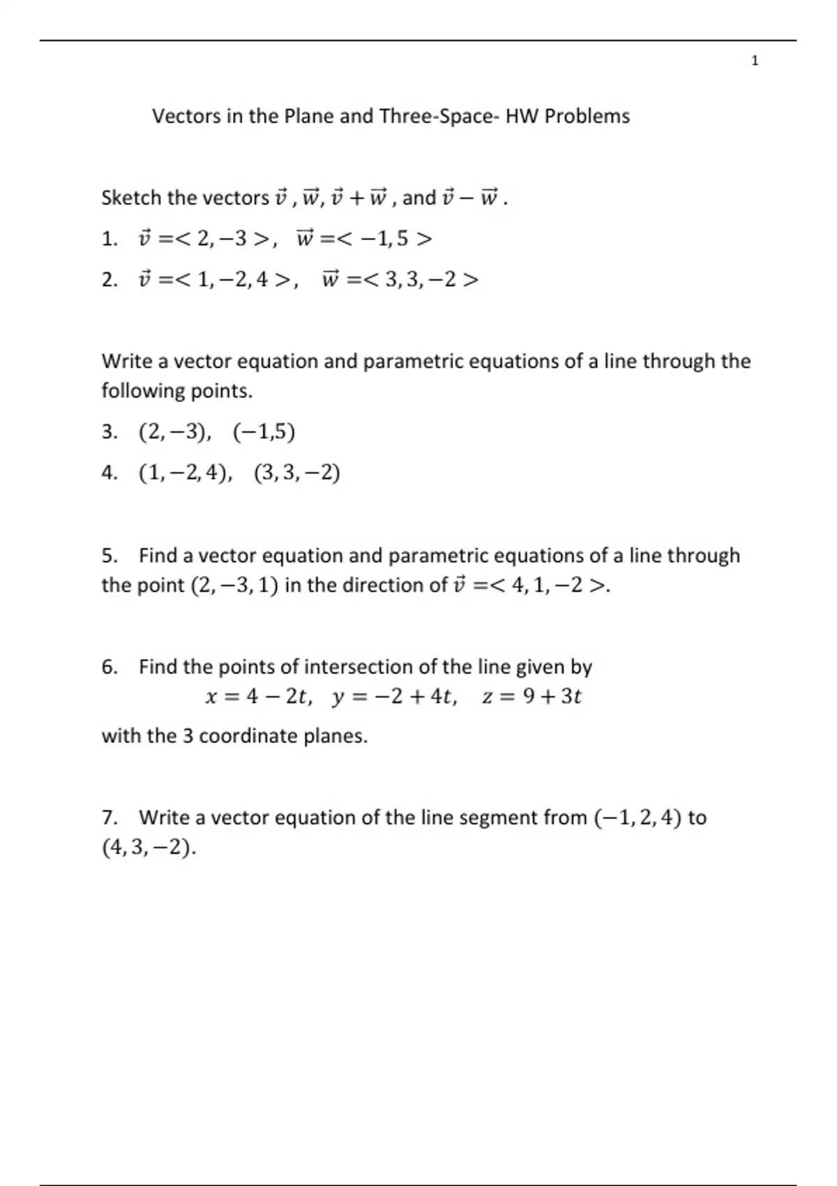 1. 𝑣⃗ =< 2, −3 > , 𝑤